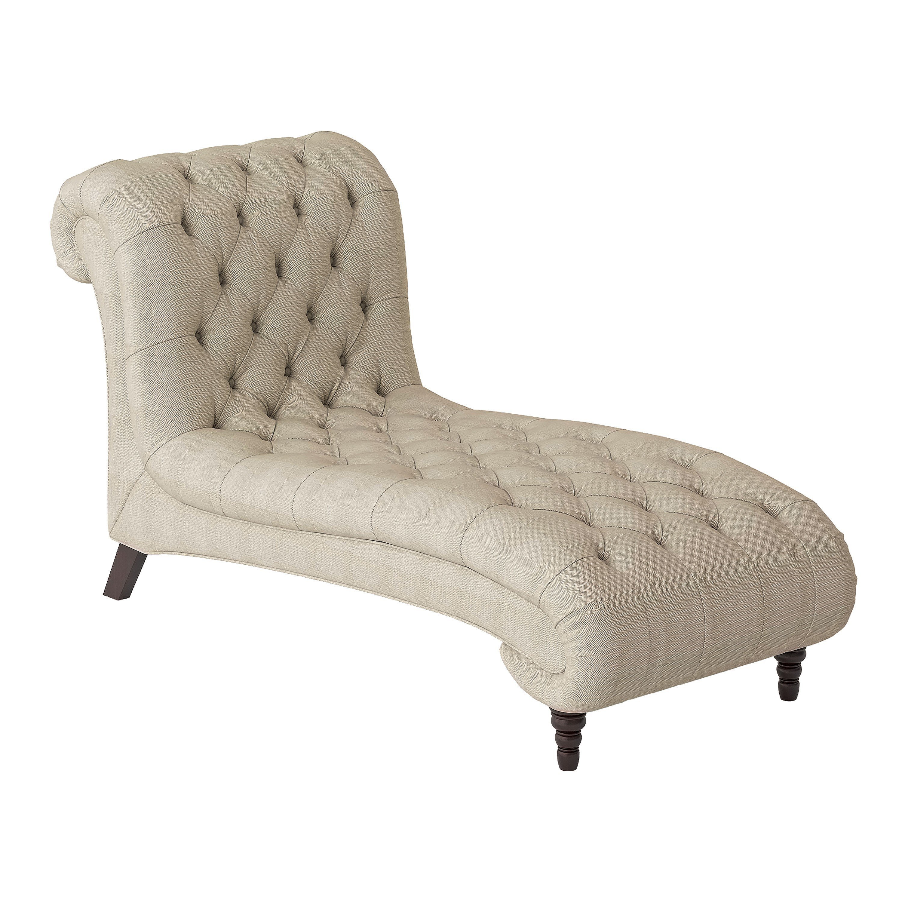 PRODUCT FEATURES:-• Country of Origin: China• Solid wood and plywood frame• Foam padding over pocket coils• Textured fabric upholstery• Attached back and seat cushions• Exposed wood legs with cherry finish• Button-tufted detail• Weight capacity: 300lbs• Fabric Type: Textured• Fabric Color: Brown• Fabric Content: 100% polyesterPRODUCT DESCRIPTION :-Graceful curves are elegantly appointed in the St. Claire Collection. Delicate herringbone style fabric presents as the initial look into the traditional style of this seating group with prevalent button-tufted accenting that is hard to overlook. The rolled arms and bowed seatbacks present an air of femininity while lending curvaceous inspiration to the traditional chaise lounge. Cherry finished turn legs provide support and complement the brown tone of the fabric.PRODUCT DIMENSIONS:-Overall Dimension: 30" x 67.75" x 38.25"HSeat Width: 30"Seat Depth: 50"Seat Height: 18"Listing Includes :- One Chaise Only.Simple Assembly RequiredShipment Service:Shipping Service Include Curb Side Delivery With Free Lift Gate Service.NOTE : No Inside Home Delivery.Shipment will take around 8-14 Business days
