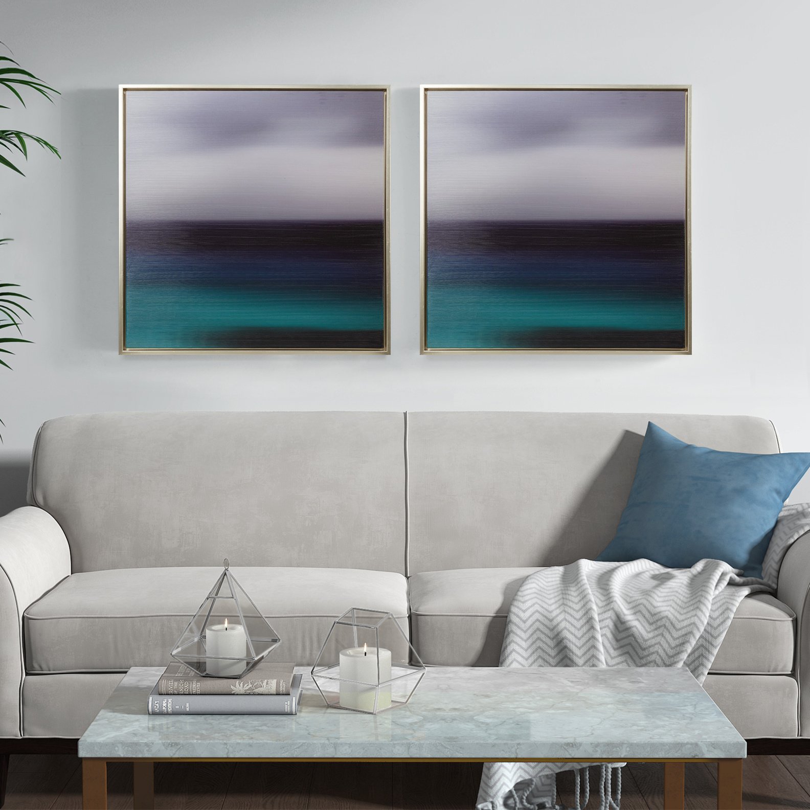 Blue and green abstract horizon framed canvas wall decor