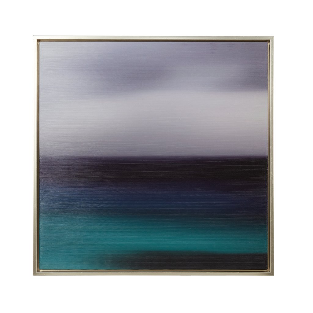 Our Blue Seascape brings a devastatingly calm appeal to your décor. A simple color palette of blues and greys are blended to create a captivating stormy seaside. The gel coat provides a glossy finish while heavy brush embellishment add rich texture and dimension, combined with a silver frame for a clean and elegant edge. . With striking hues, this wall art brings a bold and stunning look to your living area or bedroom.