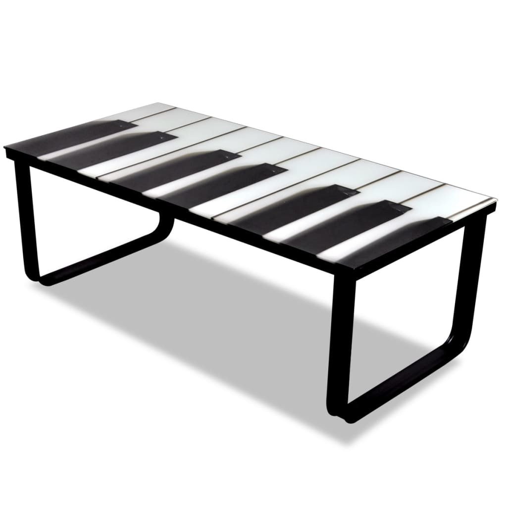 This rectangular coffee table with piano printing on the top has a modern, elegant look and feel, and will complement the furniture in your house. It can be used as a coffee table or as a side table.