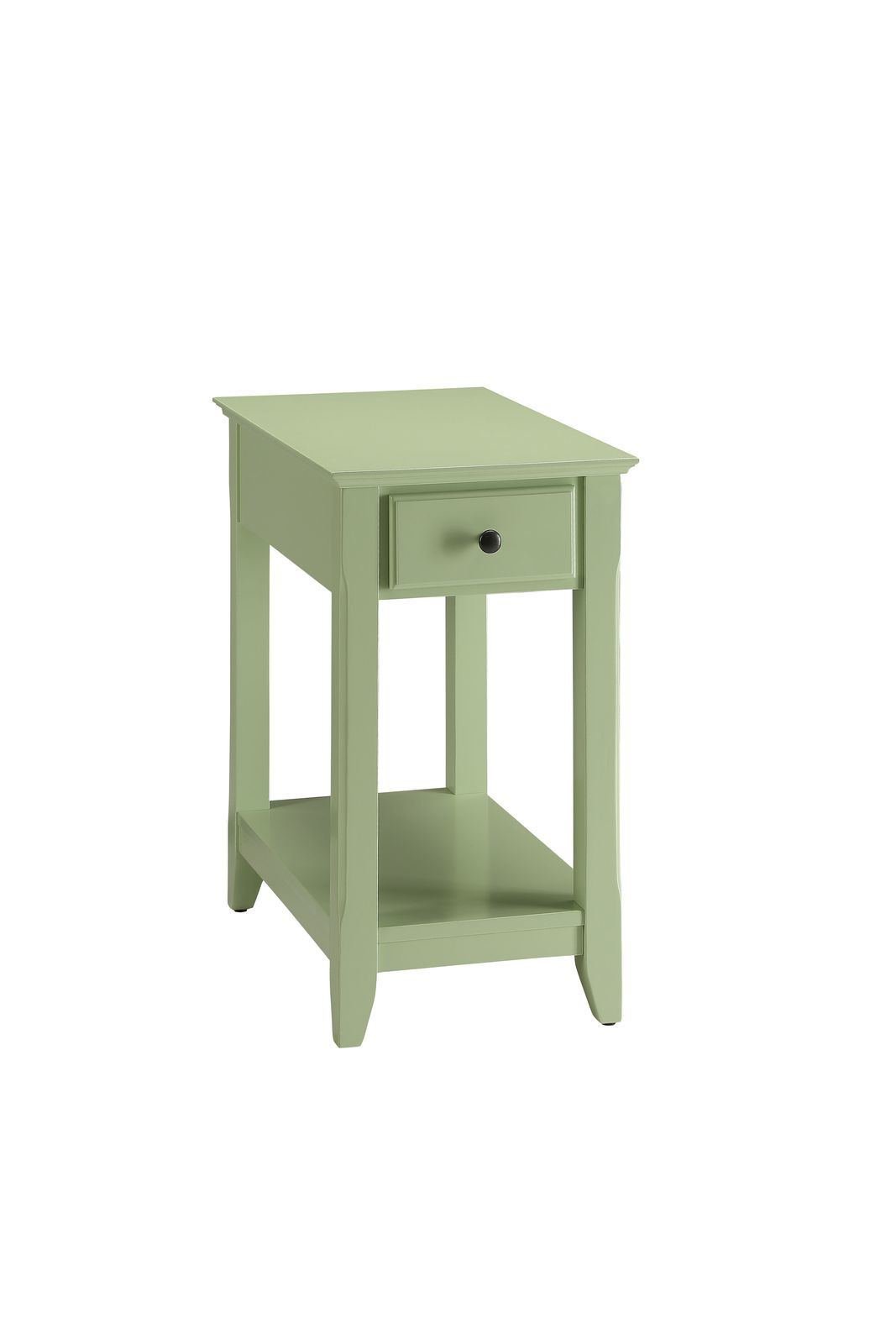 Romance : With transitional styling and skinny footprint; this Bertie side table collection does not take away from living space while still offering open storage as well as a drawer. Offered in four colors white; light green; walnut; and gray. One of them is sure to blend in perfectly with your interiors style.