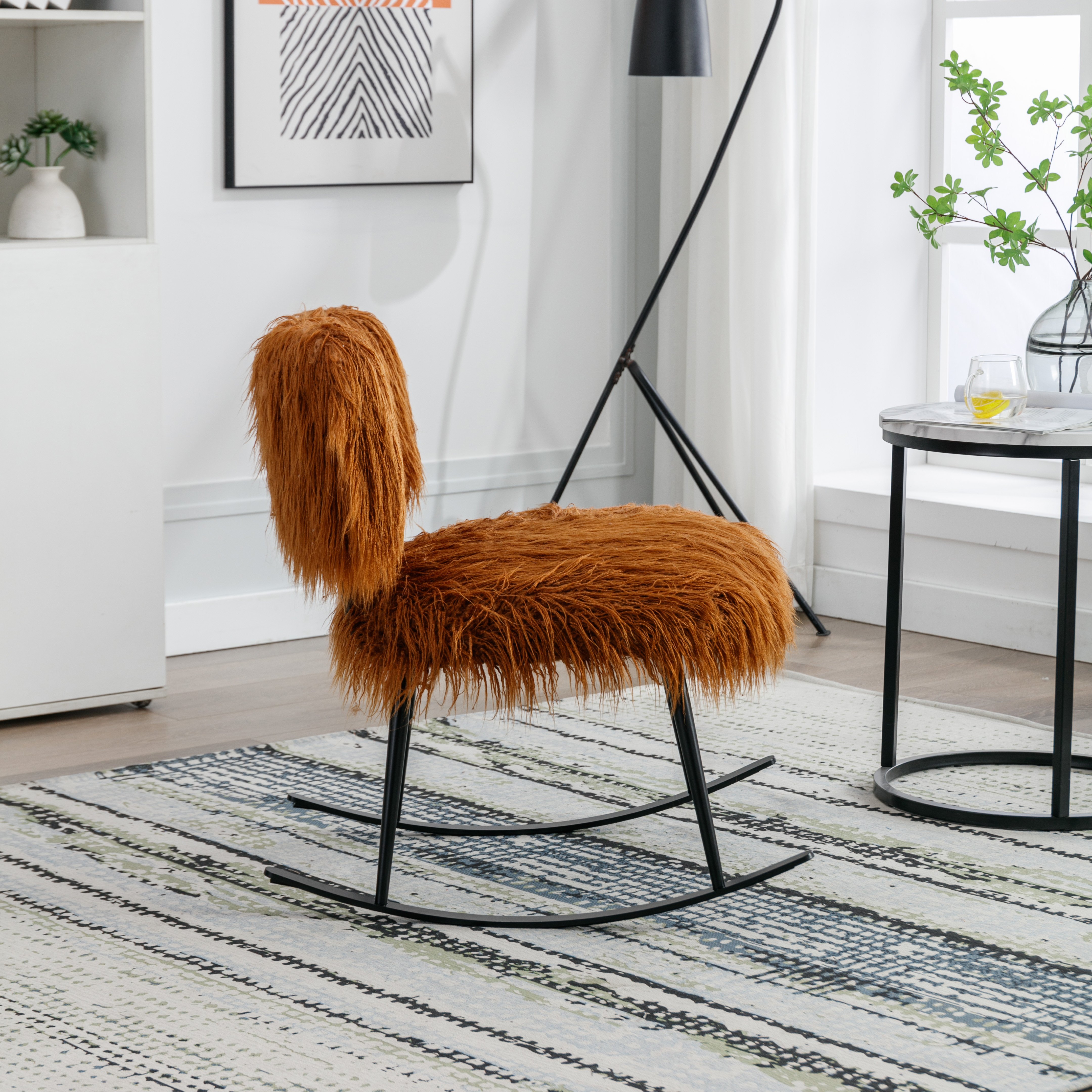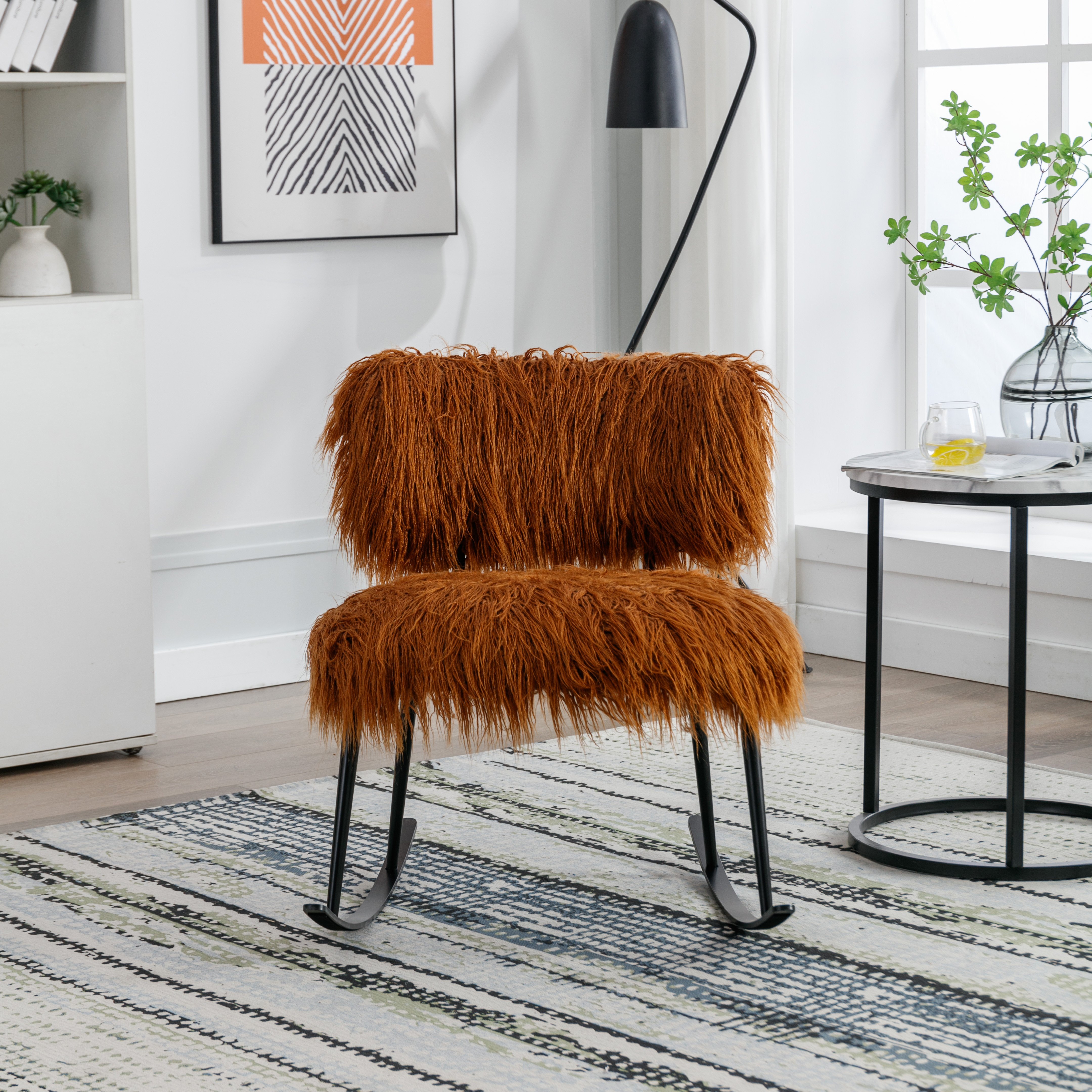 25.2'' Wide Faux Fur Plush Nursery Rocking Chair, Baby Nursing Chair with Metal Rocker, Fluffy Upholstered Glider Chair, Comfy Mid Century Modern Chai