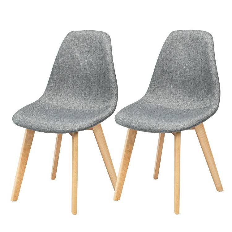 Sturdy wood Construction is enhanced by bottom cross structure, so this Set of 2 Mid-Century Modern Gray Linen Upholstered Dining Chair with Wood Legs is great stability and can load up to 330lbs. Besides, covered by durable linen, the chair with soft touch keeps breathable and ensures lasting usage. Ergonomic backrest perfectly supports your back and releases back pressure, and you can stretch your body or change sitting positions. Filled with high elasticity foam, the upholstered dining chair offers hip relaxation and a comfortable sitting experience. Featured with an uncluttered and smooth shape, this leisure chair has elegant and modern design look. Linen cover and beech wood legs add textural appeal to your living space. Non-noise foot pads can protect your floor and lightweight design for effortless transportation. The 2 chairs are specially designed for intimate conversation, which provide a cozy place for families of 2 to enjoy dinner or reading together. The stylish design can match various decoration styles in the lounge, dining room, living room and study room. It is easy to assemble the chairs with all parts numbered in the package, so you don't need to spend much more energy on installation but enjoy. Besides, since smooth wood legs and fabric cover, the daily maintenance is easy to do.