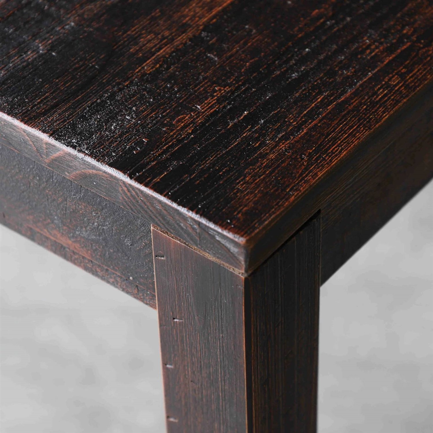 Give your dining room a rustic, modern farmhouse look with the warmth of this Modern Farmhouse 63-inch Solid Wood Dining Table in Rustic Dark Brown Finish. This versatile and neutral design goes well with several chair types. It features robust and sturdy wood construction made of 100% solid pine wood from Southern Brazil. The finish is designed to accentuate the unique grain, knots, and natural textures in the wood panels; and each piece is sanded and distressed by hand leading to variations in the color and texture that make every unit unique. This distressed finish is very durable and easy to touch-up.
