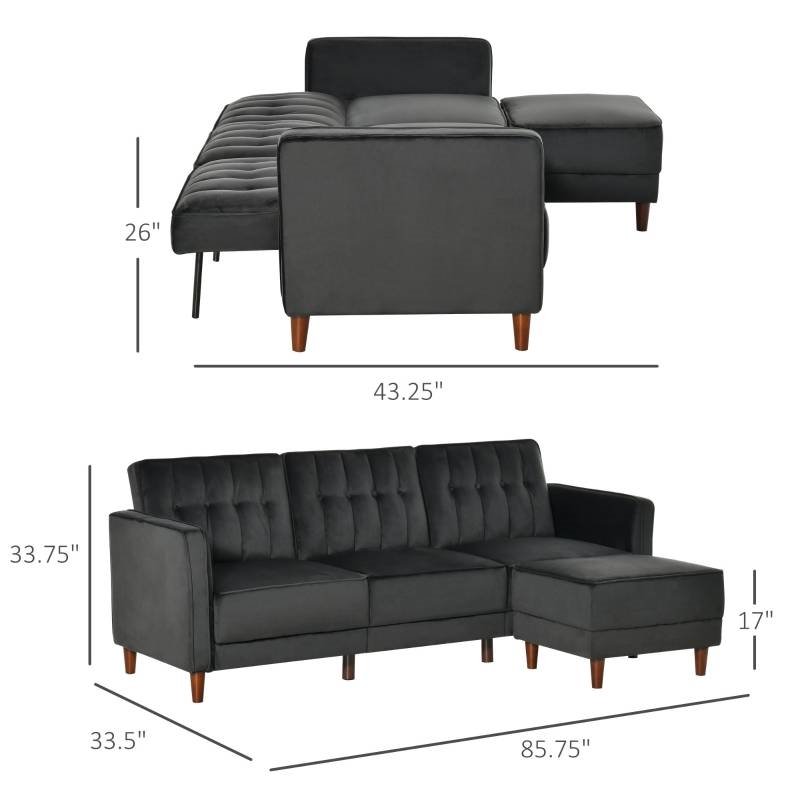 Everyone loves home furniture that does double duty, especially those living in compact home spaces. This Modern Mid-Century Reversible L-Shaped Sectional Sleeper Sofa in Black Velvet ensures you can have the lounge area you deserve and the second bedroom for an overnight guest. This sleeper couch with chaise lounge features velvet-touch fabric for easy maintenance and thick sponge padding upholstery for exceptional sitting comfort.