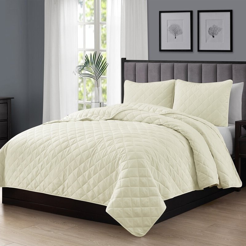 King CAL King 3-Piece Ivory Polyester Microfiber Reversible Diamond Quilt Set King CAL King 3-Piece Ivory Polyester Microfiber Reversible Diamond Quilt Set King CAL King 3-Piece Ivory Polyester Microfiber Reversible Diamond Quilt Set