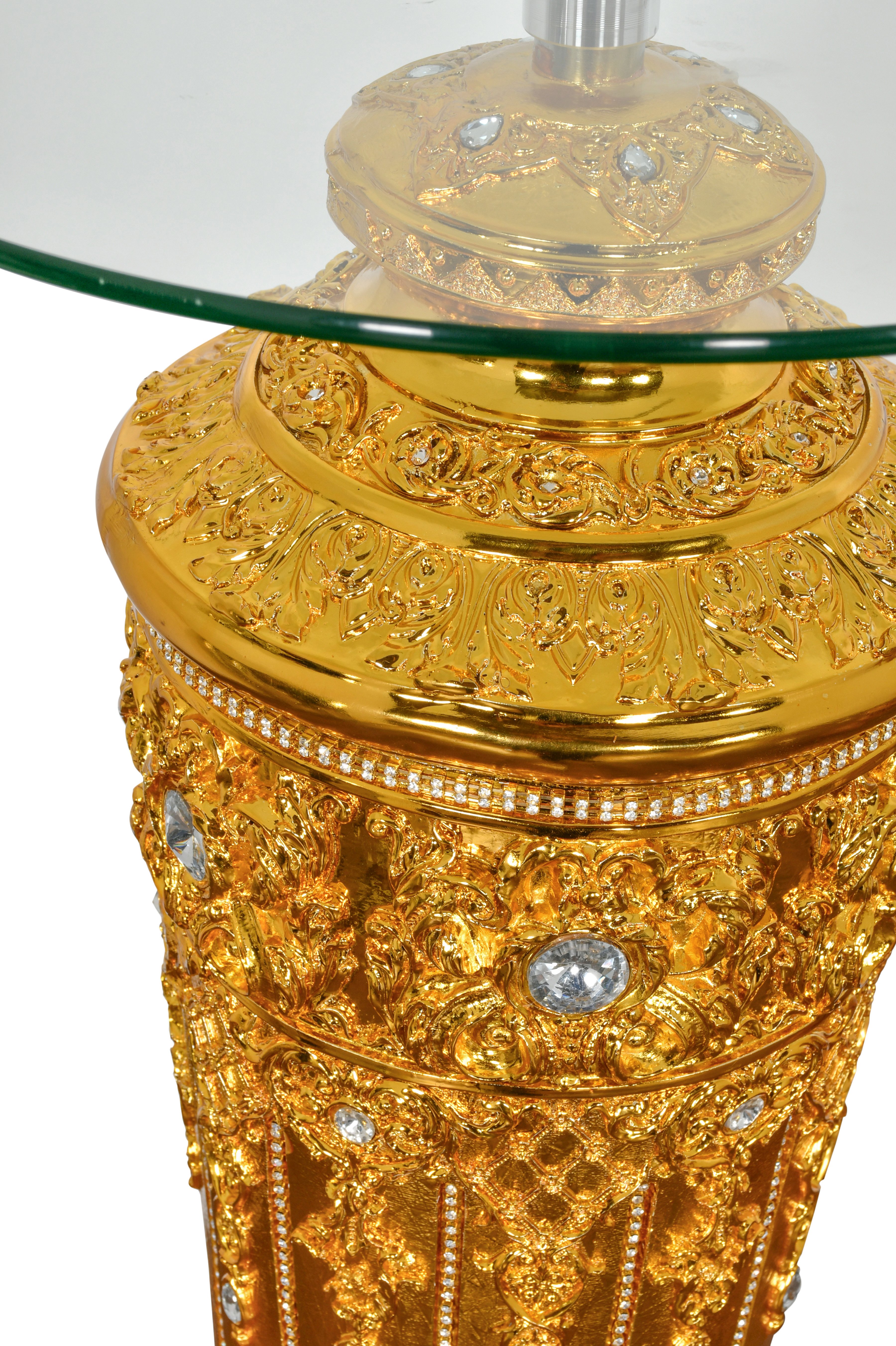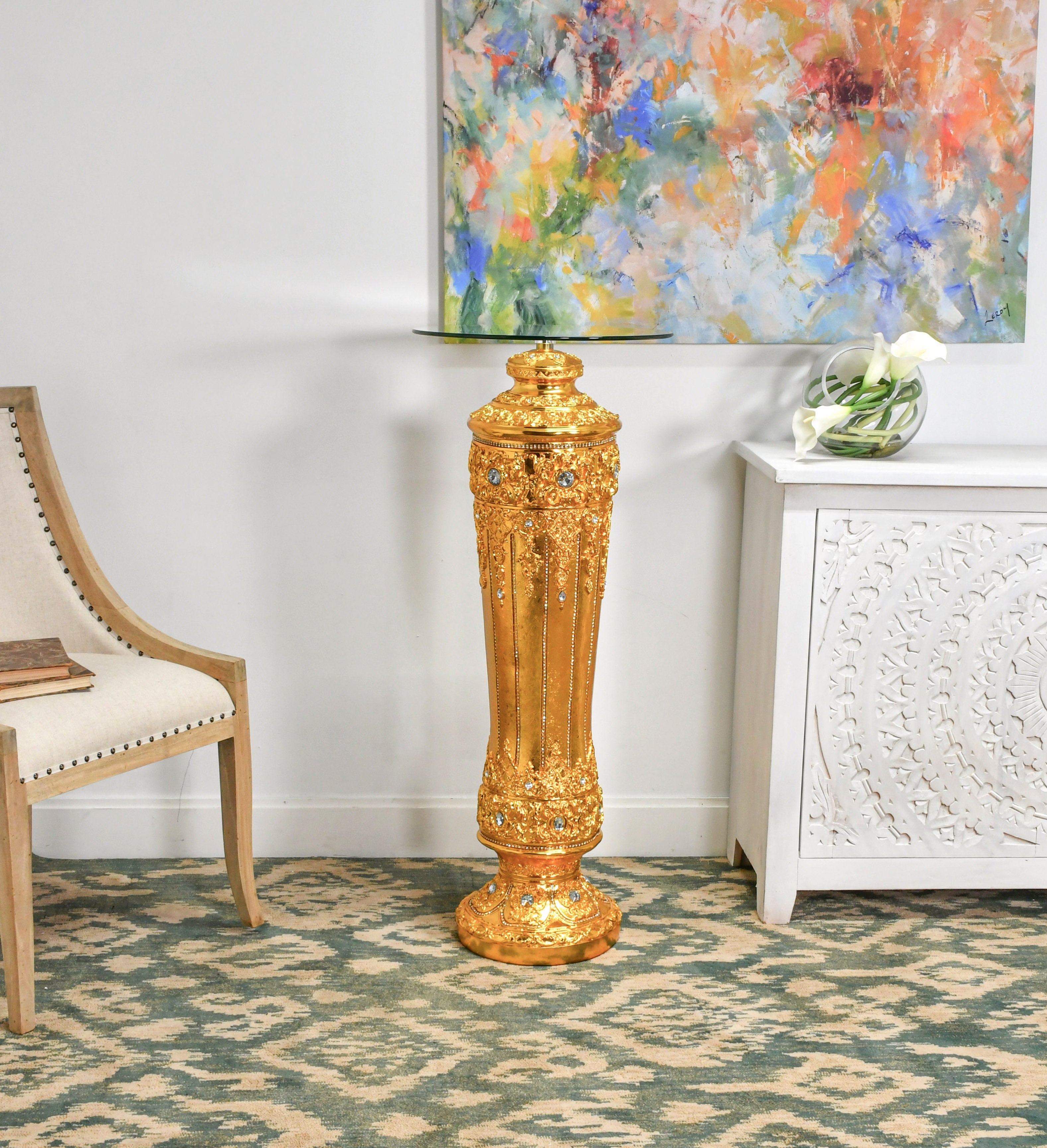 Discover the European Elegance Golden Pedestal, standing tall at 47 inches with a regal allure. This exquisite pedestal features a glass top, perfect for proudly displaying your cherished items or serving as a royal accent in any room. Elevate your decor with its opulent design and make a bold statement of sophistication and elegance.