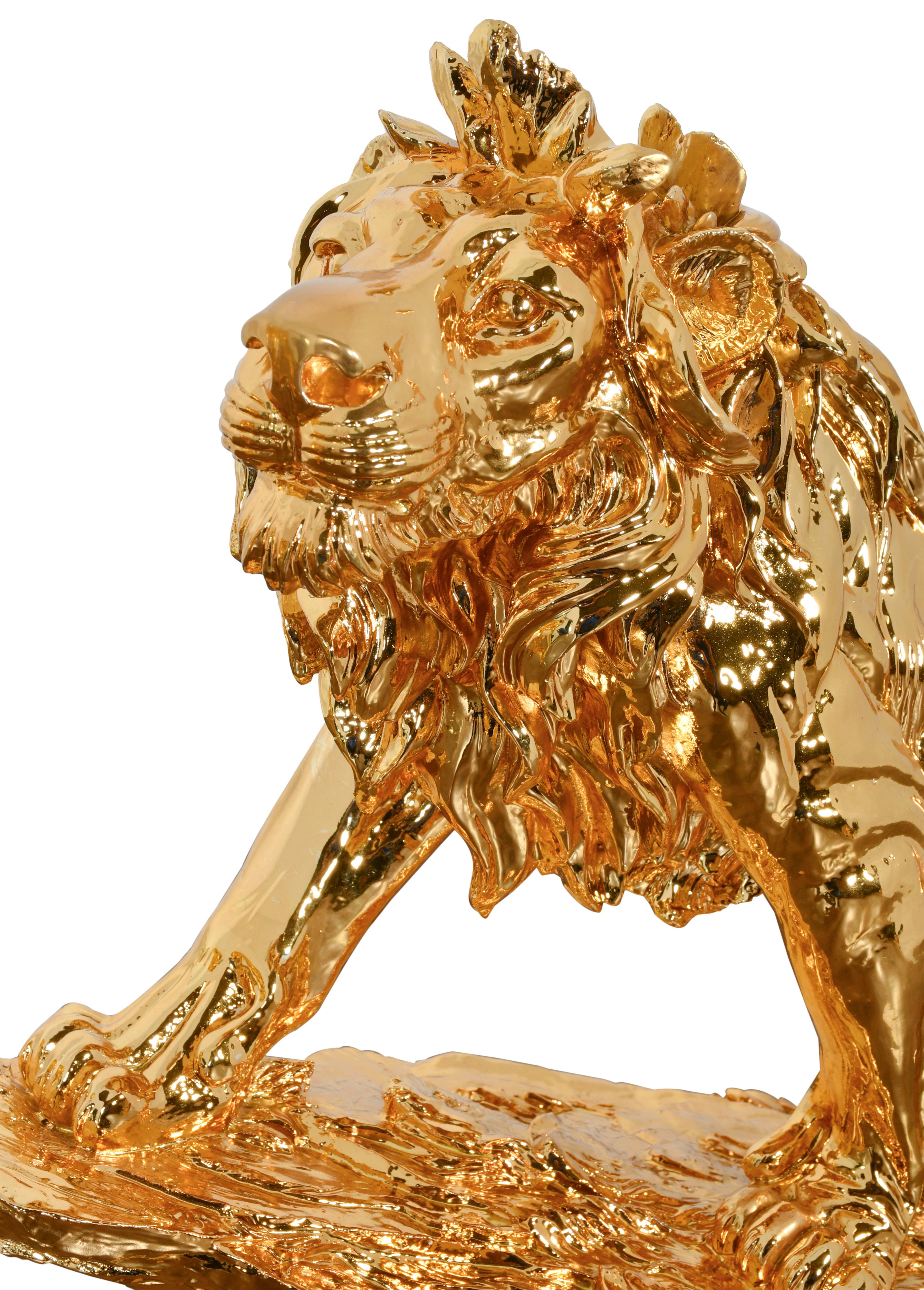 Behold the European Elegance Lions Pride Sculpture, a majestic and sizable masterpiece measuring 30 inches wide with a grand scale of 26 inches high. The intricately crafted lion captures a powerful moment as it walks out onto a rock, exuding strength, and nobility. The sculpture showcases excellent detail, skillfully capturing the lion's majestic pose. Elevate your decor with this awe-inspiring piece that embodies the regal essence of the king of the jungle.