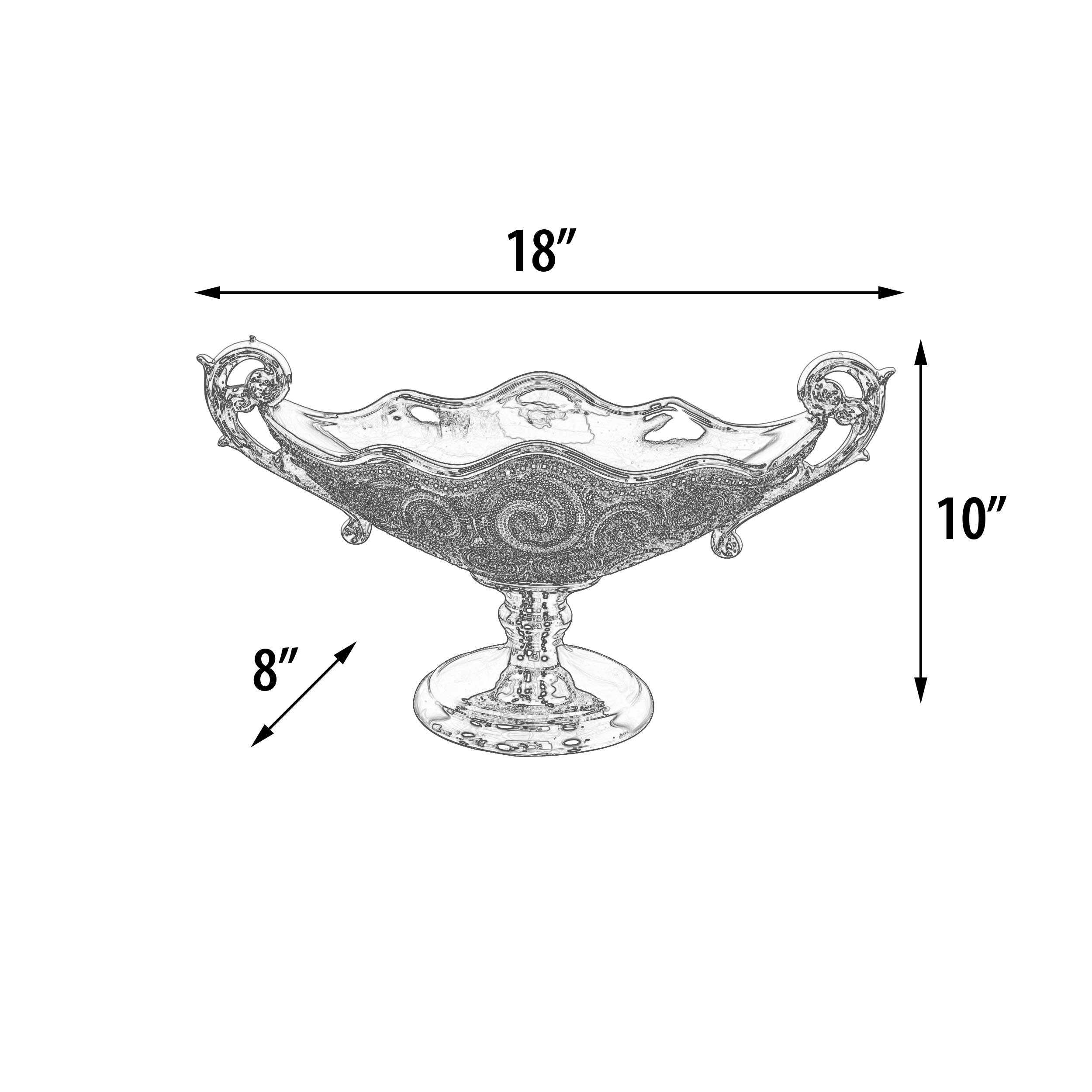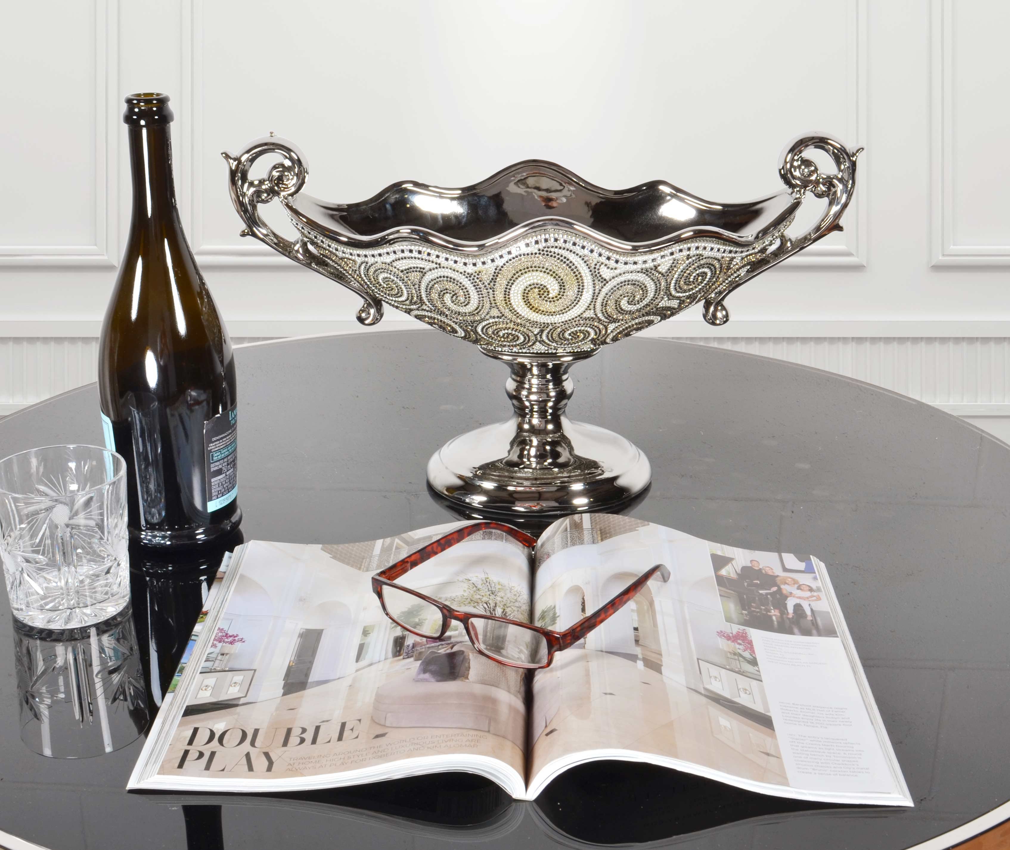 An 18 inch contemporary designed Silver Black Crystal Center Bowl. Hand Cast in Porcelain with Silver Plating. The vase is adorned with 100s of hand applied Rhinestone.