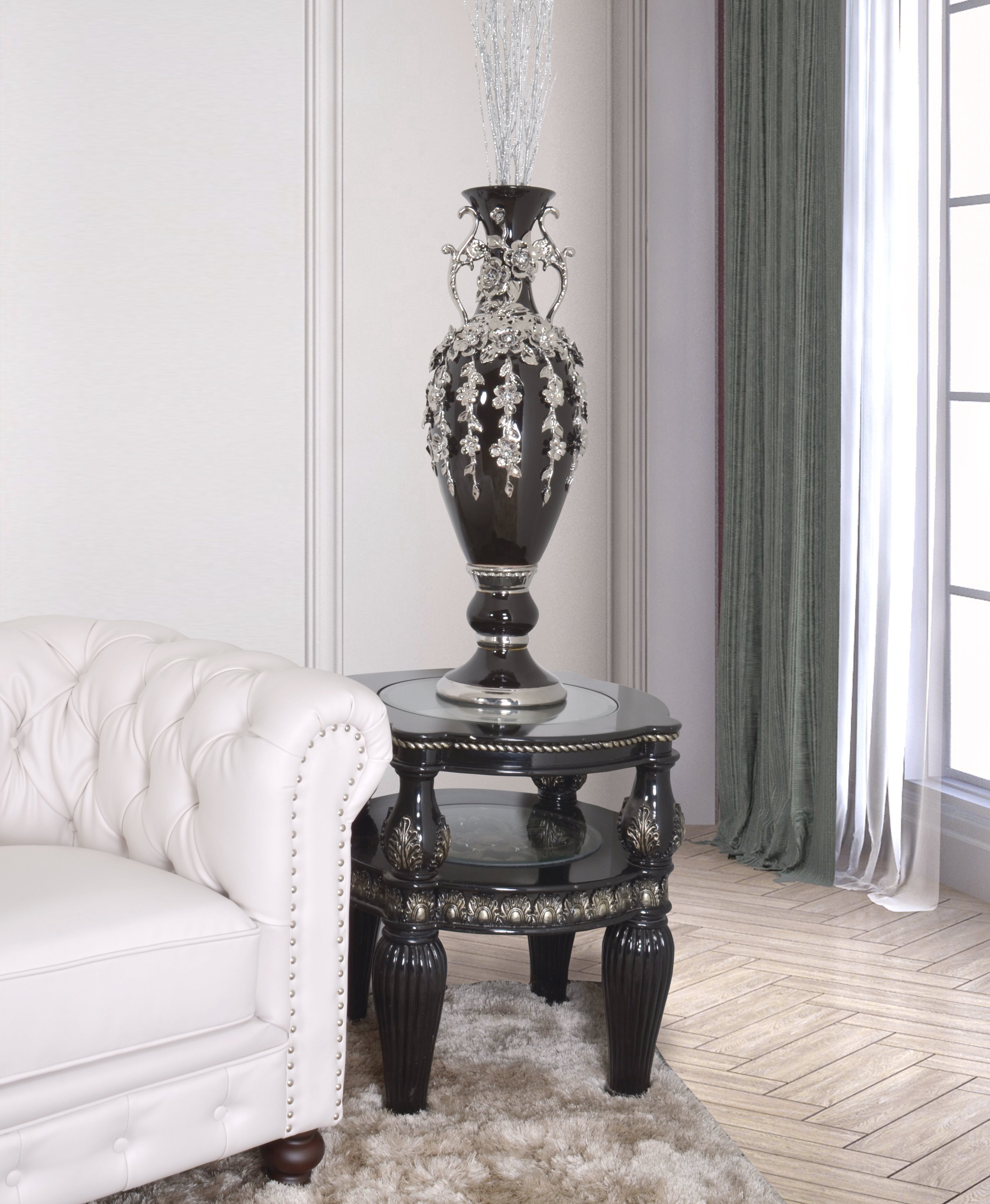 Home > Black and Silver Floret Jeweled Stunning Vase 35 Inches Tall