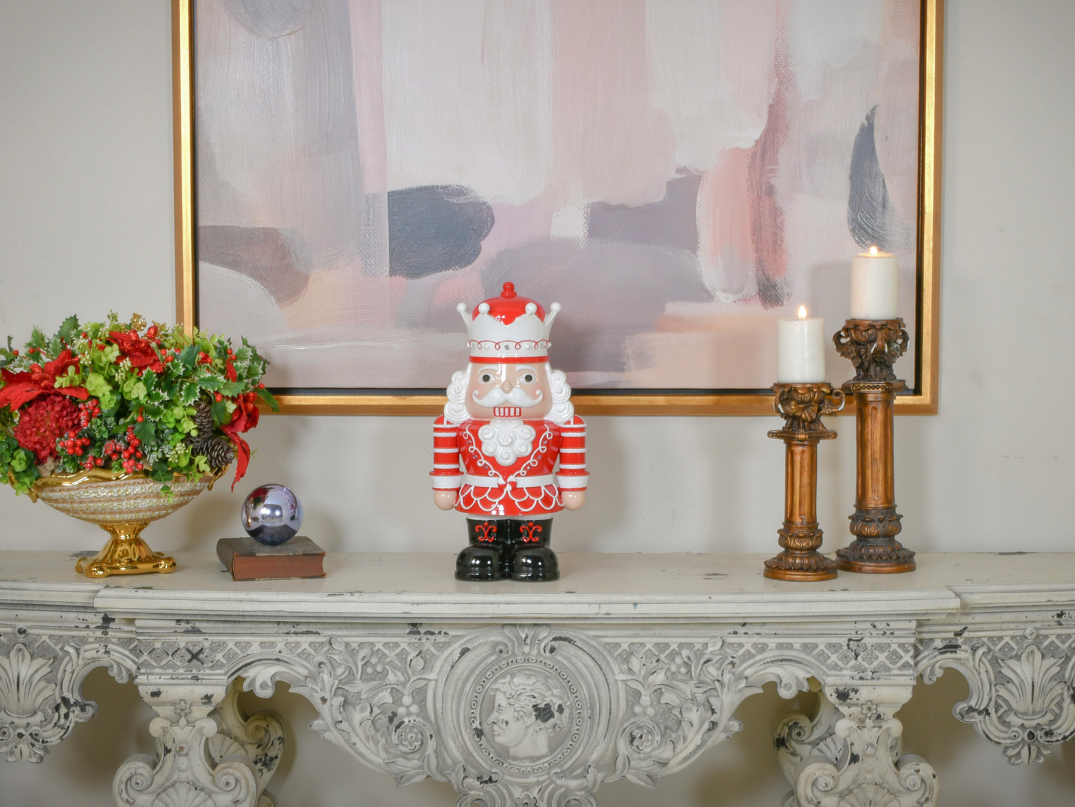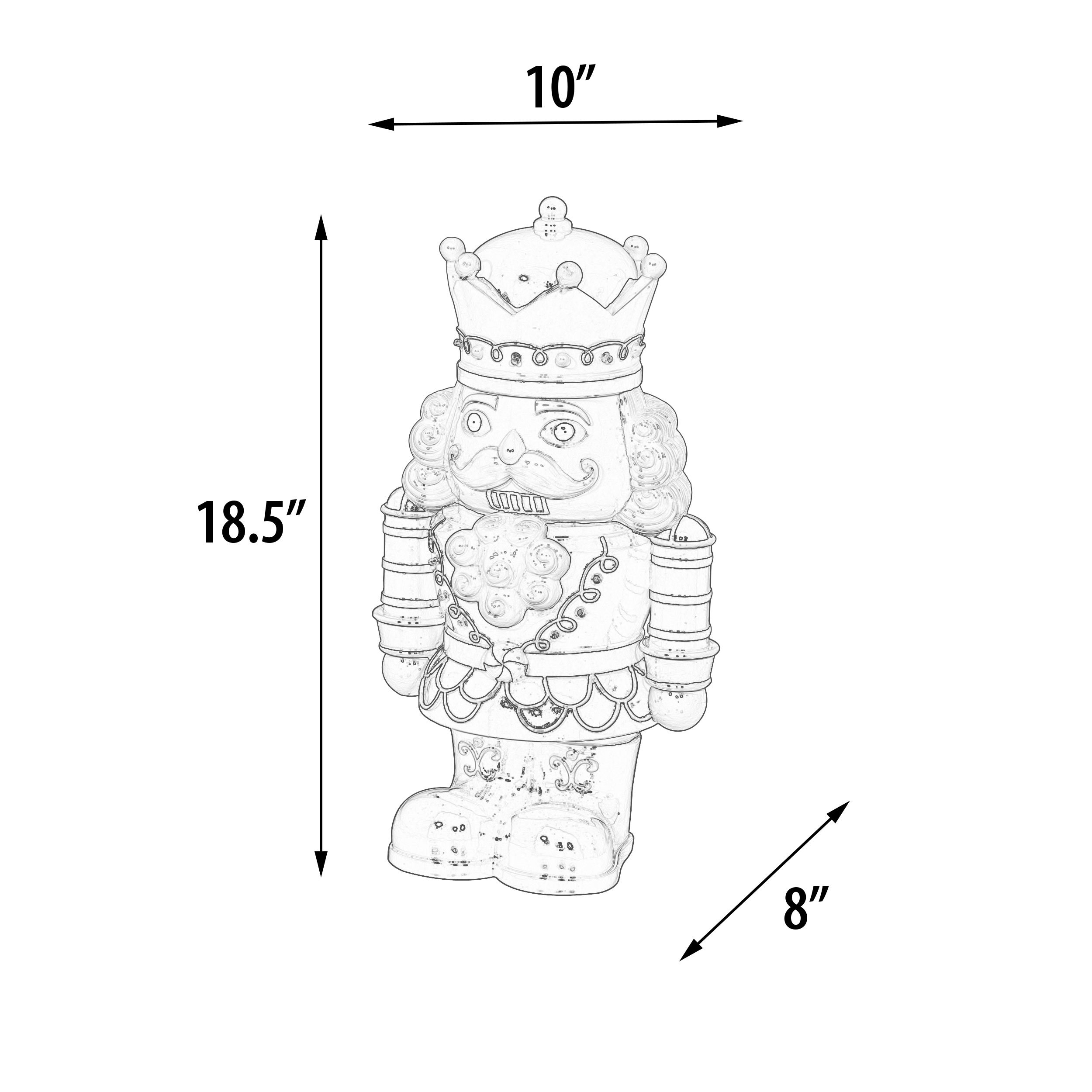 This charming 18.5-inch nutcracker figurine is a delightful addition to any festive decor, combining timeless tradition with a touch of modern flair. Battery-operated LED lights bring this character to life, casting a soft, inviting glow that accentuates his vibrant red uniform and regal crown. A perfect blend of whimsy and elegance, his presence is a reminder of the enchanting stories and warm memories that fill the holiday season. Whether nestled among greenery on the mantel or standing solo on a side table, this nutcracker is sure to spread cheer with his illuminated smile and classic holiday spirit.