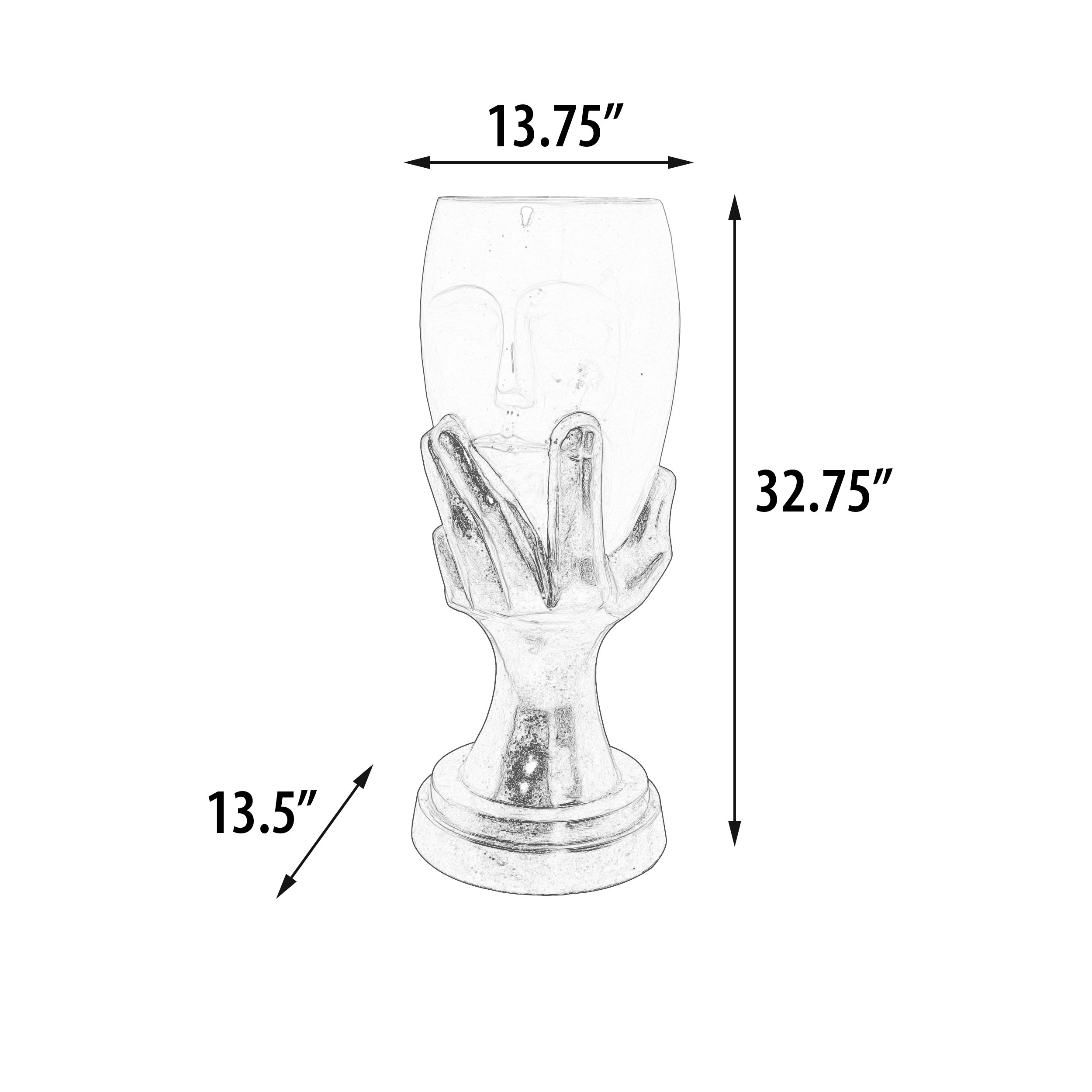 The Gold and White Mask and Hand Vase offered is a unique offering of functional art. The design is bold and creates thought from admirers. An artist crafted sculptured creation that combines art with that of a functioning vase. Hand Cast in All weather fiberglass, this sculptural Vase can be used indoor or outdoor. Note * For Outdoor use, The lacquer top coat finish will require re-application if it starts to get dull from the sun. No Assembly Required.