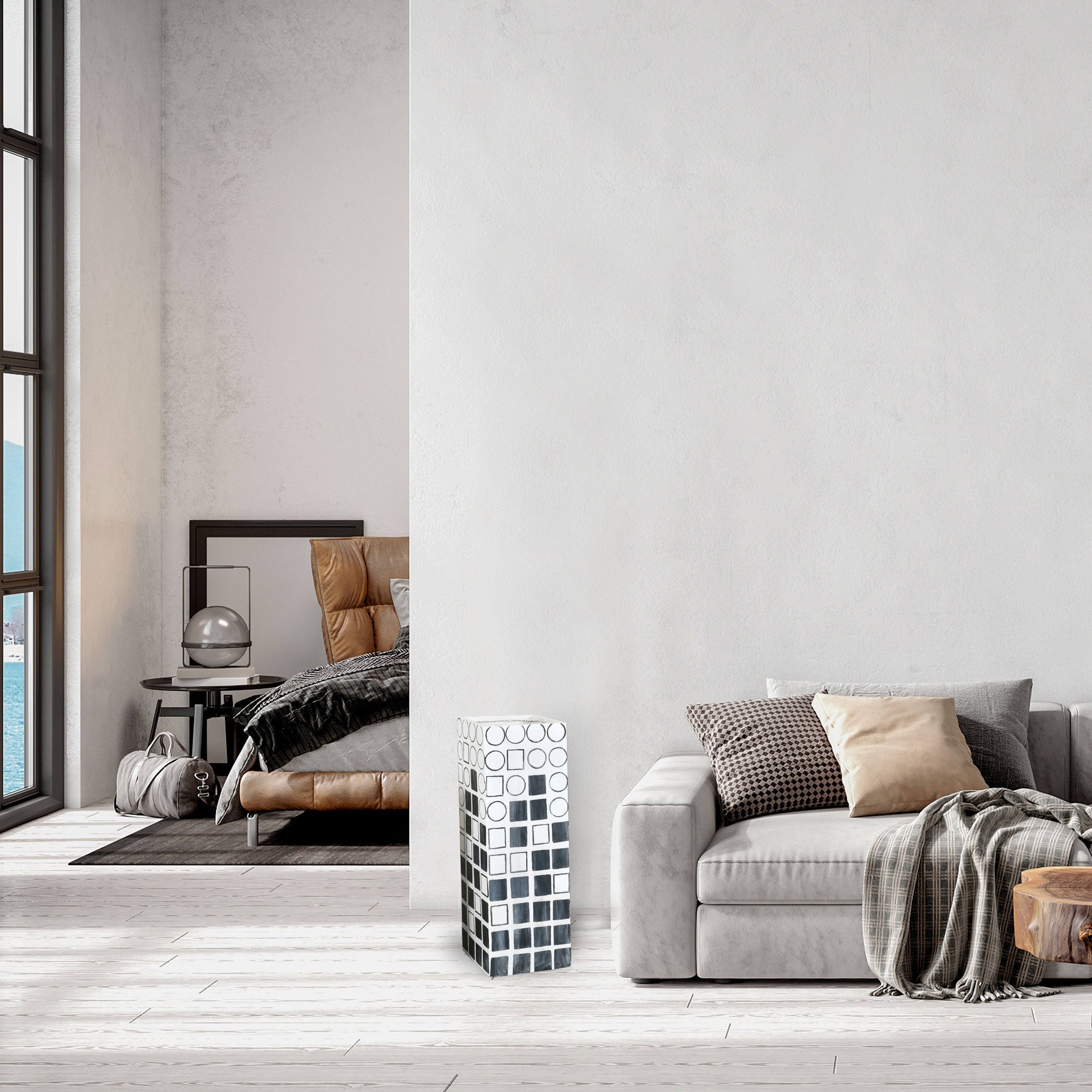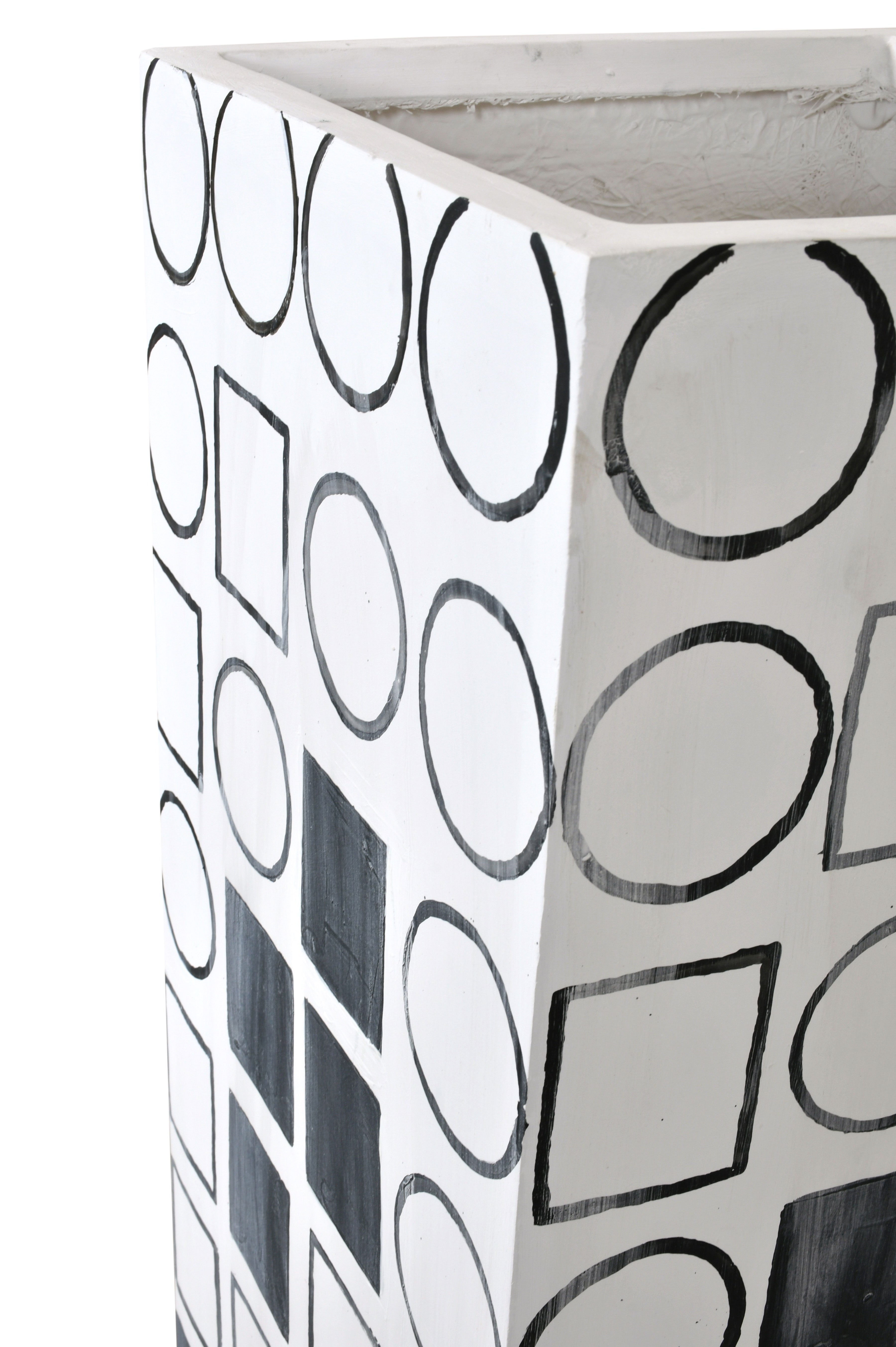Introducing the 40-inch tall Decorative Planter Vase, a masterful blend of contemporary design and modern flair. With dimensions of 13 inches in both width and depth, this vase is an artistic statement piece, meticulously hand-painted in black and white and adorned with a captivating array of geometric shapes. The medium height of this vase, within its collection, allows for versatile decorative arrangements, whether used on its own or grouped with the 32-inch and 48-inch versions for a visually engaging tiered display. The geometric patterns, rendered in a stark black and white palette, provide a dramatic contrast that accentuates the vase's elegant profile and adds a dynamic touch to any space. This 40-inch planter vase is not only a striking decorative element but also a functional piece, ideal for housing plants or acting as a standalone accent. Its contemporary design complements a variety of decor styles, making it a perfect addition to any modern living room, entryway, or office. Create an atmosphere of sophistication and artistic charm with this exquisite planter vase, transforming any area into a focal point of style and creativity. Whether enhancing a minimalist setting or adding a finishing touch to a boldly decorated space, the 40-inch tall Decorative Planter Vase is sure to captivate and impress.