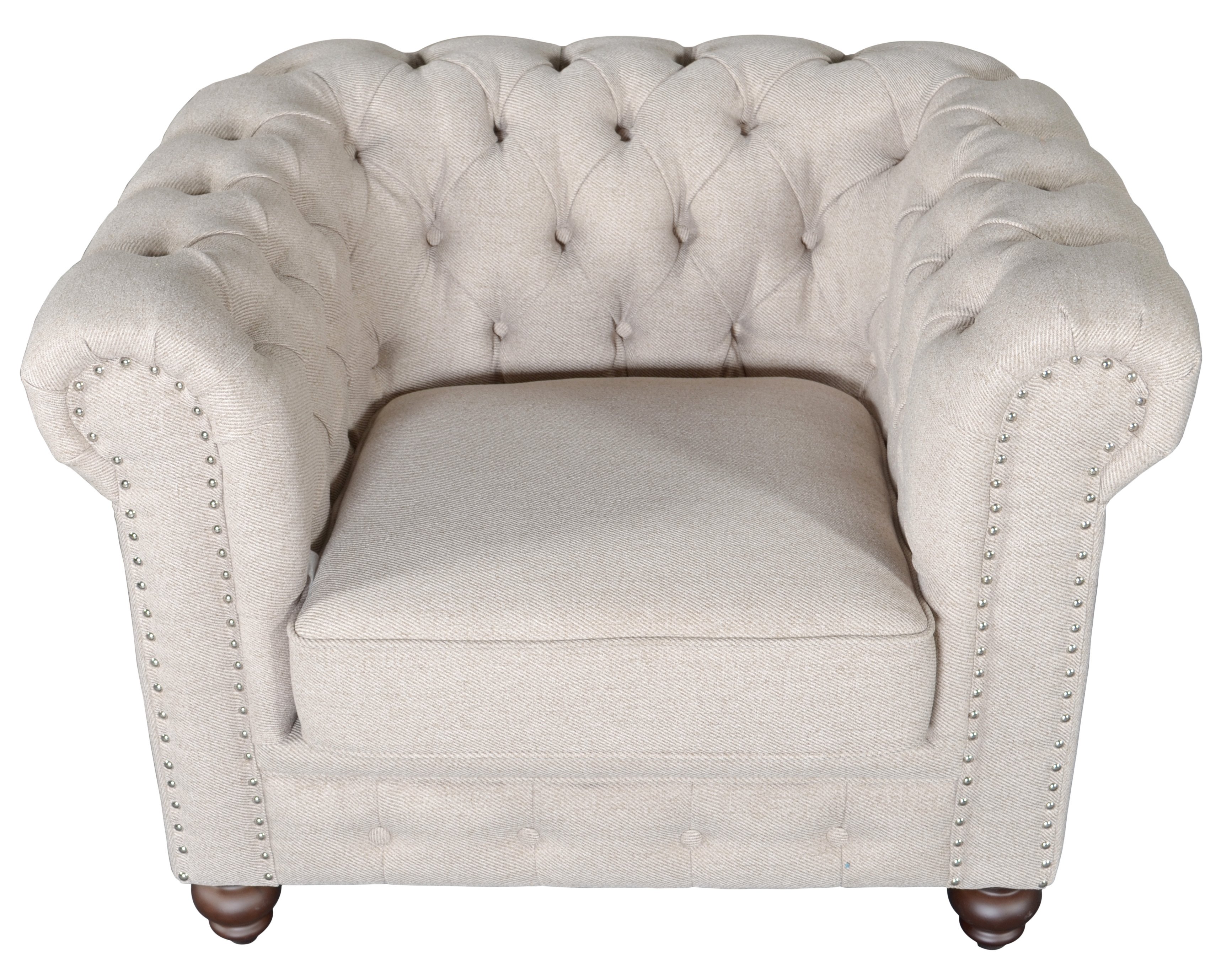 A classic designed chesterfield armchair with button tufting and nail head accents. Each cushion seating is designed for comfort with individually wrapped spring coils and sinuous spring suspension for support. The frame of the armchair is constructed using engineered hardwood made of multiple layers of solid wood being pressed together to make it strong and warp resistant. Corners of the armchair frame are reinforced with wood blocks to prevent wobbling and strengthen the sturdiness. The armchair is covered in dark linen upholstery that is lightweight, and soft with good breathability. Each armchair comes with three year frame limited manufacturer’s warranty and 5 years on the covers ensuring you will enjoy many years of useful comfort.