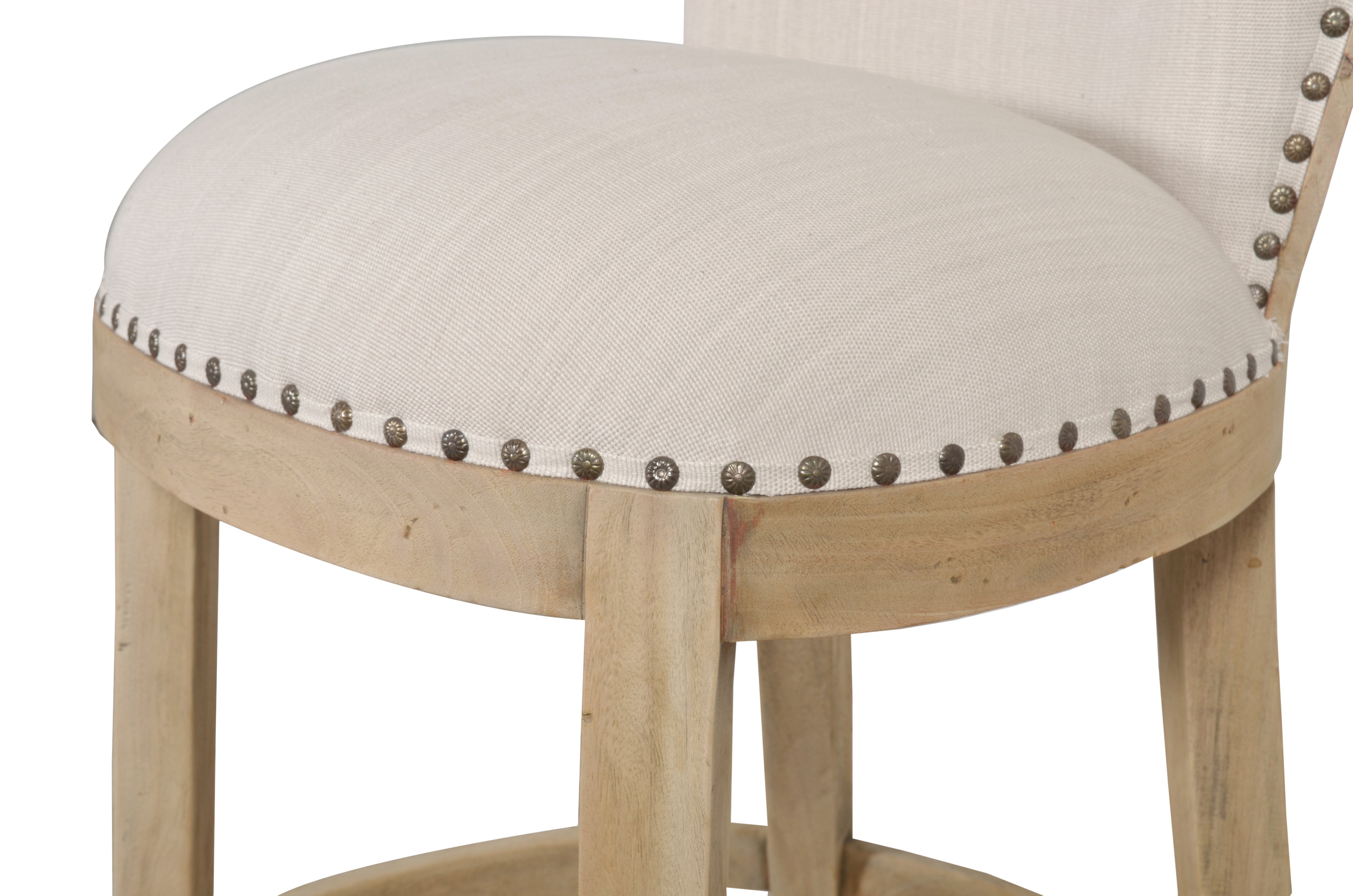 The Farmhouse Cape Counter Height Stool is an all around good choice for Today's livable Life Style's. The chair design offers a timeless styling that would fit a wide array of Interiors. It has an interesting design with it's exposed back and burlap backing defining the chairs authentic hand made appearance. The stool is hand made, one piece at a time, an example of age old craftsmanship that is finely crafted, and that will last with reasonable care. The hardwood used for the seating structure and strength is solid Mahogany. The designs finish is a steel brushed seasoned natural wood finish that works perfectly with any of the farmhouse or coastal tables or collections. The fabric chosen is linen in a neutral tone and woven thicker for a longer lasting and better grade of covering. The chairs are manufactured by the Heritage Collection, a division of AFD Home. Sold separately customers should order the correct Height for the Right Application: This Stool is appropriate for shorter Kitchen counters or Tables ranging from 36 to 39 Inches in Height for Taller Conventional Bar heights ranging from 40 to 42 Inches Tall order the taller seating Farmhouse Cape Bar Stool (12014215) . Hand Made and imported from Indonesia. No Assembly Required