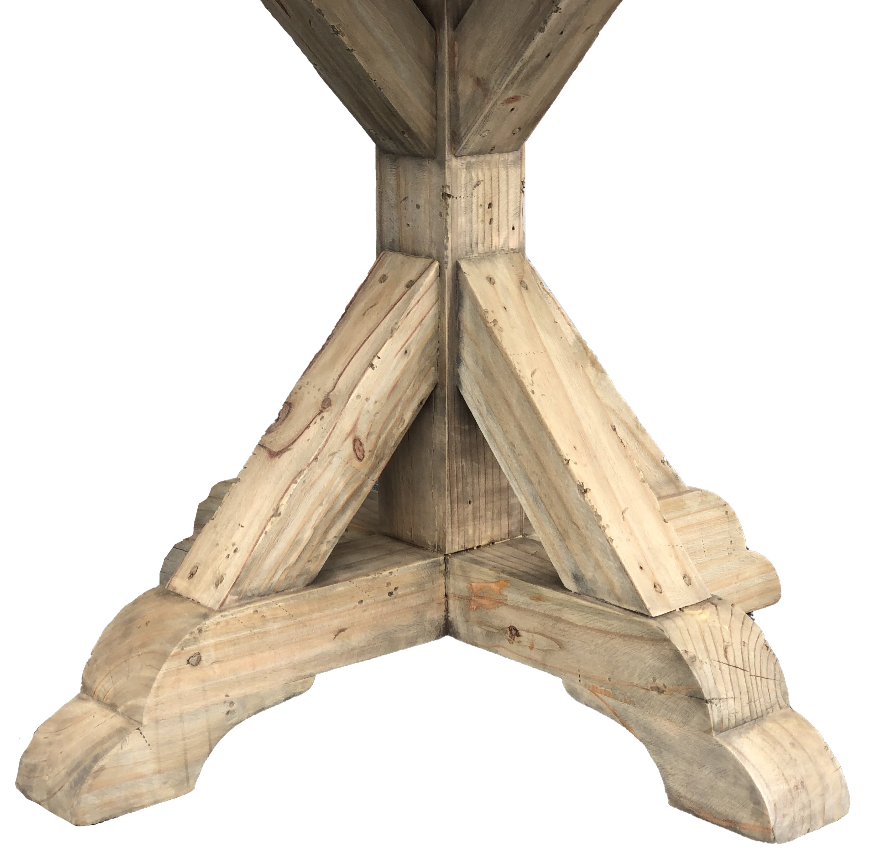 Our 48" Diameter Farmhouse Round Table is an amazing engineered table creation utilizing hand inlay. This very rare to find hand-made yet properly engineered solid wood table was proudly made possible from a lifetime of furniture manufacturing experience. The center Geometric Star design is a fine inlay of environmentally sourced Mindi wood on top of a specifically created Multiplex for a lifetime of stability. The table base and top center bands are handcrafted using reclaimed solid New Zealand Pine that is specifically hand selected, sourced, and imported for the final combined effect. The hand finishing is an open grain Farmhouse style wood finishing giving protection but maintaining the very natural effects of the reclaimed and solid woods used. Minor assembly of the top to the base allows easier placement into the home. This table pairs with many chair options as well as hutches, sideboards, consoles, kitchen islands, and many more beautiful options from the American Farmhouse Collection from Heritage, a division of AFD Home.