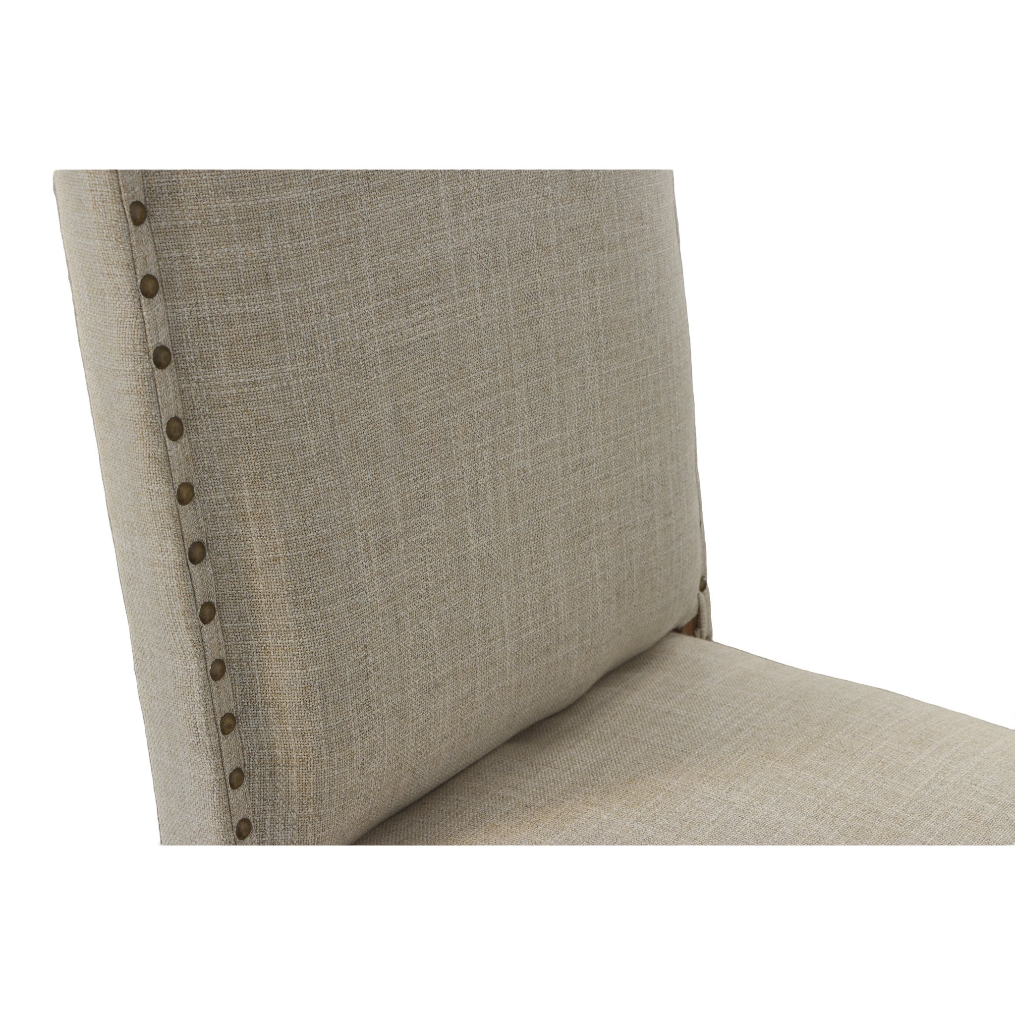 Our Chair Upholstered Dining Solid Wood Neutral Linen w Knailheads is a good choice. Beautiful and well made. The Chair frame is constructed of Natural Hardwoods, using tongue and groove joint methods. Natural finishing uses water resistant lacquer, that seals and protects the multi step blended finish. The chair has a fully upholstered seat and back with Knailheads accents. The chair uses a weighted linen fabric that is a neutral poly/cotton. Sold separately this Chair can be used with many Dining Tables offered or can be ordered as a part of the complete Wood and Industrial Iron Mango Parquet Dining Table Set of 6. Hand Made and Hand Finished in India for AFD Home. Chairs arrive Fully Assembled, Enjoy!.