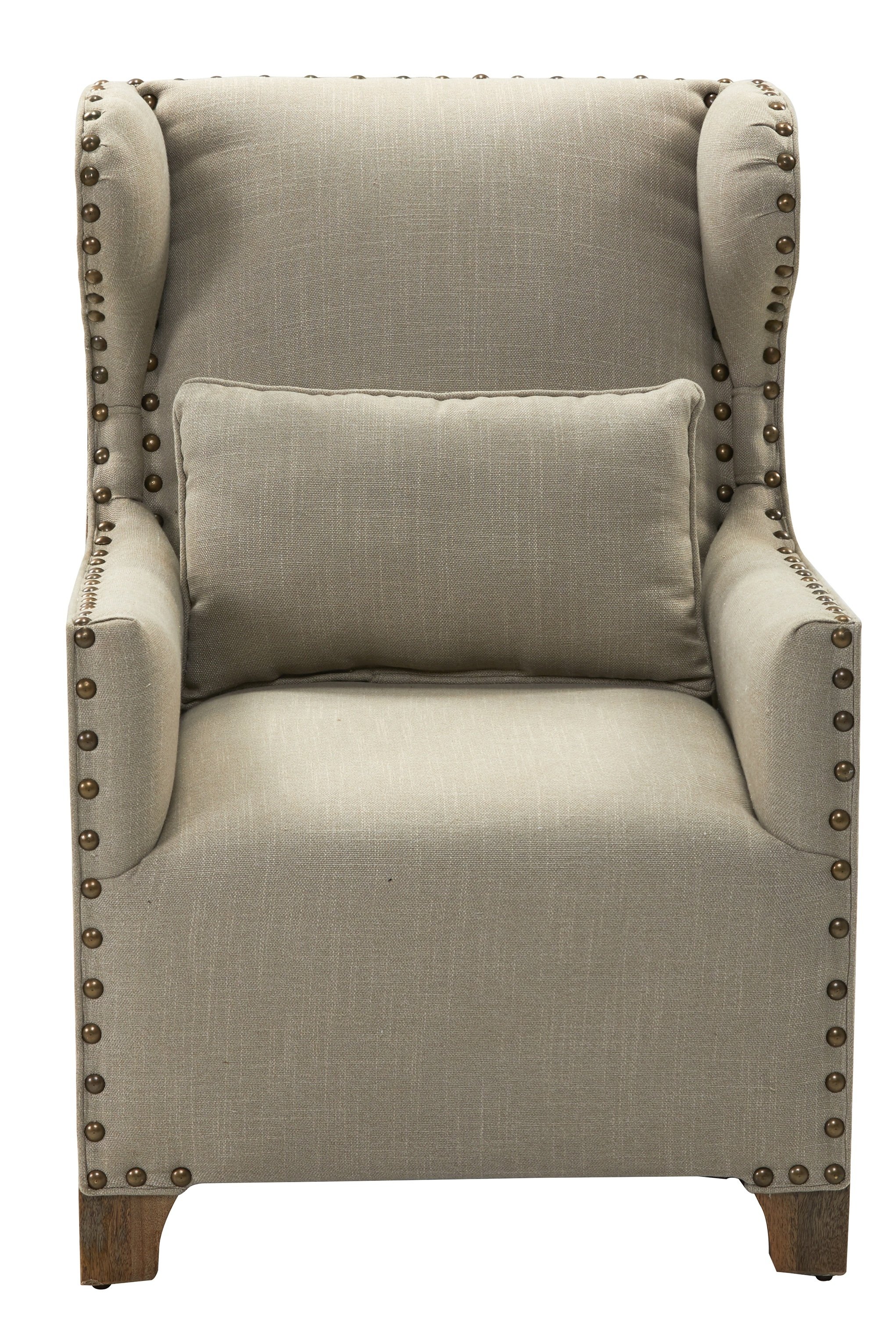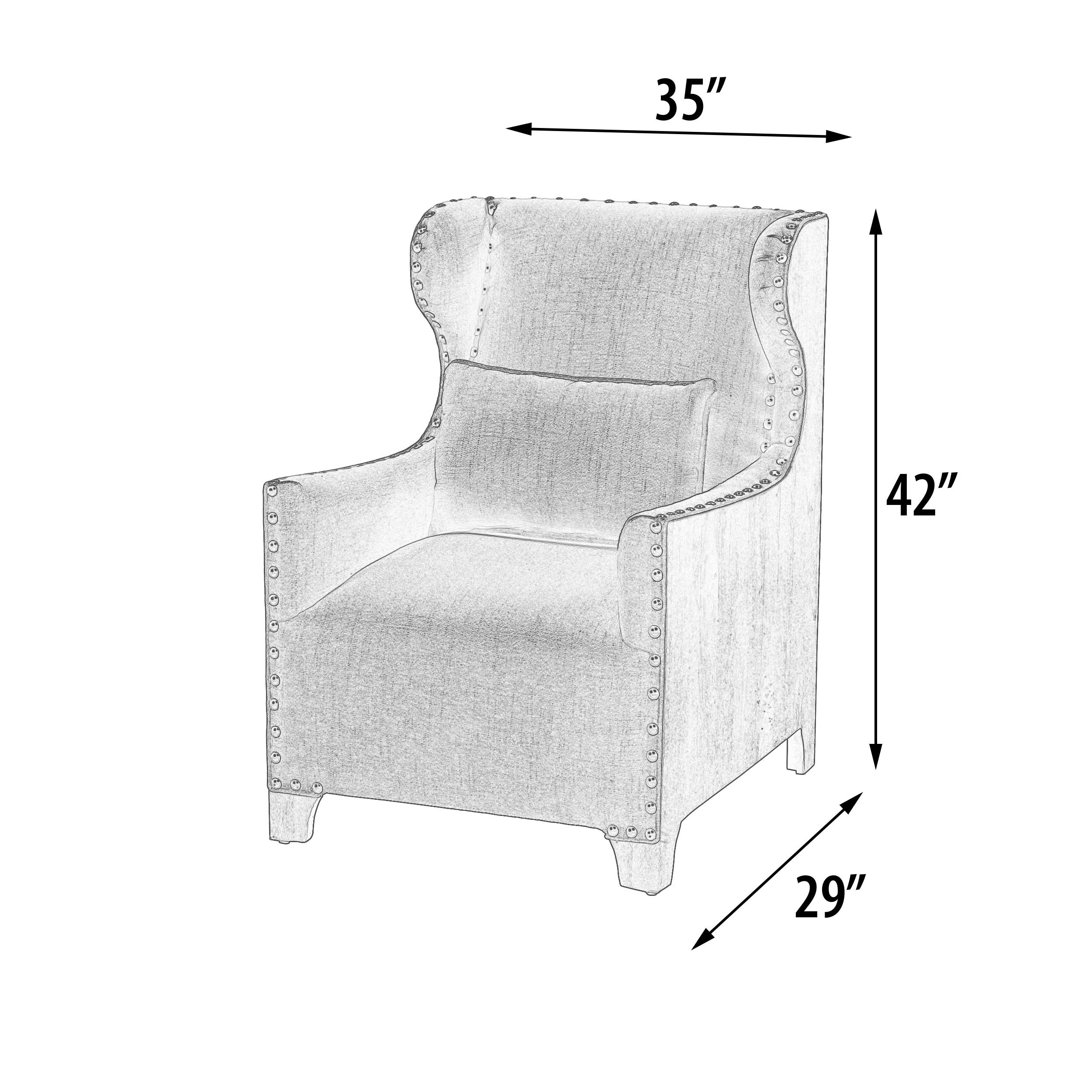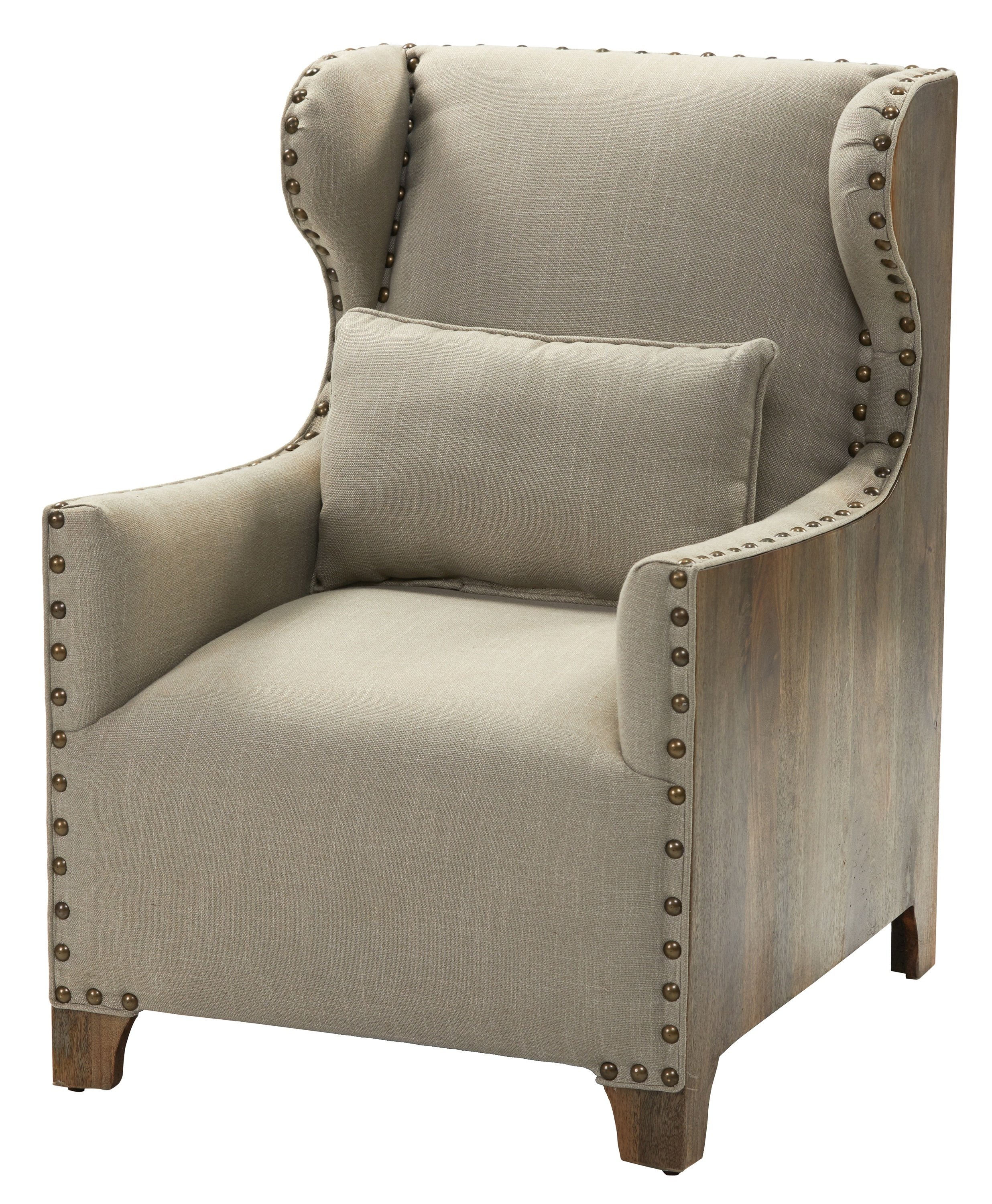 The Chadwick Solid Mango Fireside Wing Chair offered is a top selling wonderfully designed Stately Chair. Not only is it beautifully designed chair but it is made exceptionally well that ensures years of enjoyment. The chair is constructed, using tongue and groove joint methods with solid mango sides. The finish used is a natural water resistant lacquer that seals the multi step blended finish. Features include integral shaped feet, neutral linen upholstery and individually hand set decorative nail head trim. Sold separately but often ordered in pairs for Balance. Hand Mad and Hand Finished in India for AFD Home. No Assembly Required!