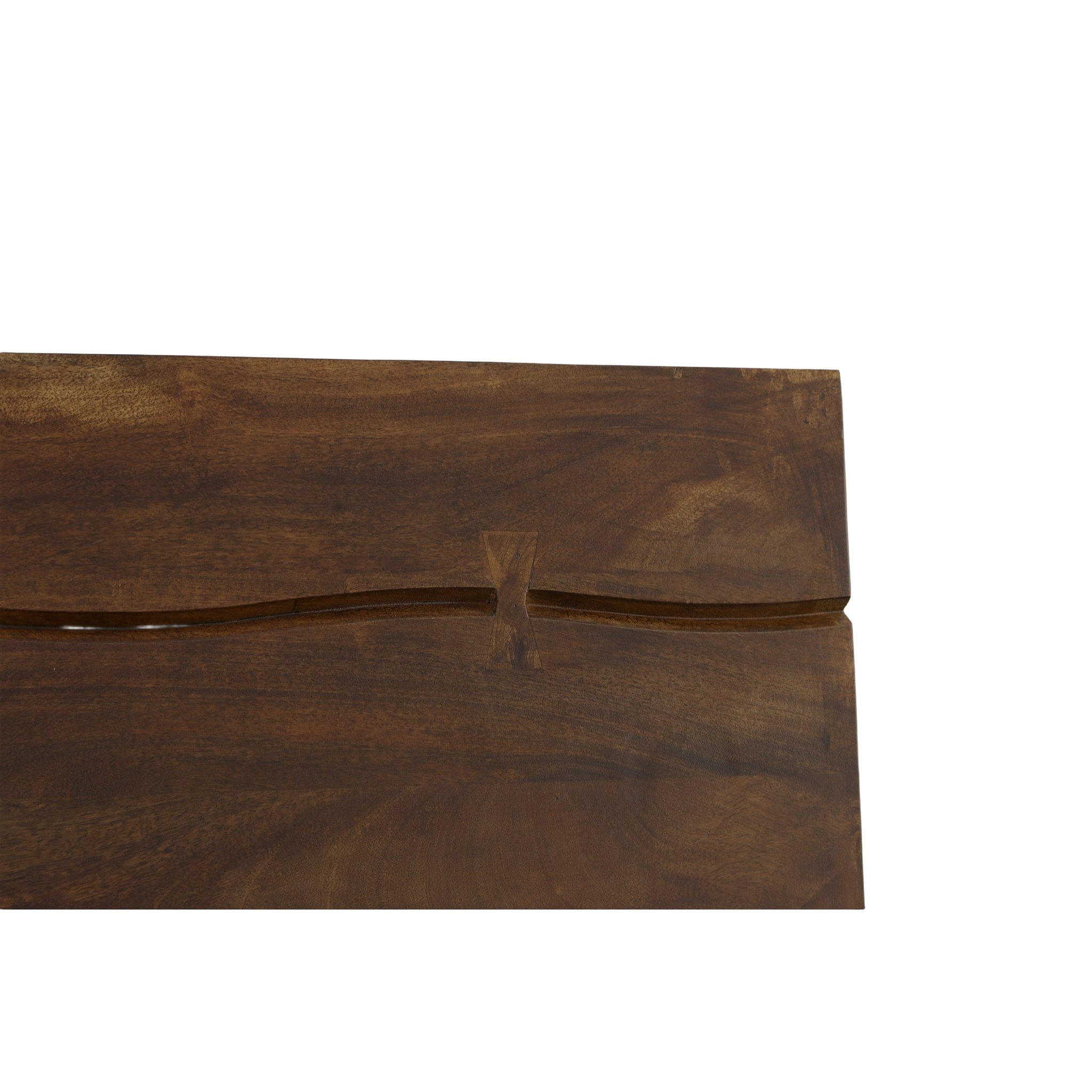 A Modern Rustic designed Queen size Platform Bed made from authentic thick slabs of wood planks with natural live edges. A great design that offers lots of Placement options from a fabulous Wilderness Retreat to the coolest Urban Loft. Hand Made starting with the searching for the perfect Slabs to Construct their design. Wood Butterflies an old wood working technique are used for design and strength. The Finish offers a beautiful and natural Walnut stain and sheen. The Queen Size Bed offered is Sold Separately and can be ordered in King Size. You may also wish to consider the matching bedside table stands, Mountain Studio Modern Rustic Live Edge Plank Night Stand. The Mountain Studio Collection offers furniture designed for a Rustic Modern lifestyle. Crafted in strength a furniture quality you can count on, that will last and offer years of low maintenance real family use. Bed will arrive complete with Headboard, Platform and Slats. Hand Made in India for AFD Home. Assembly Required