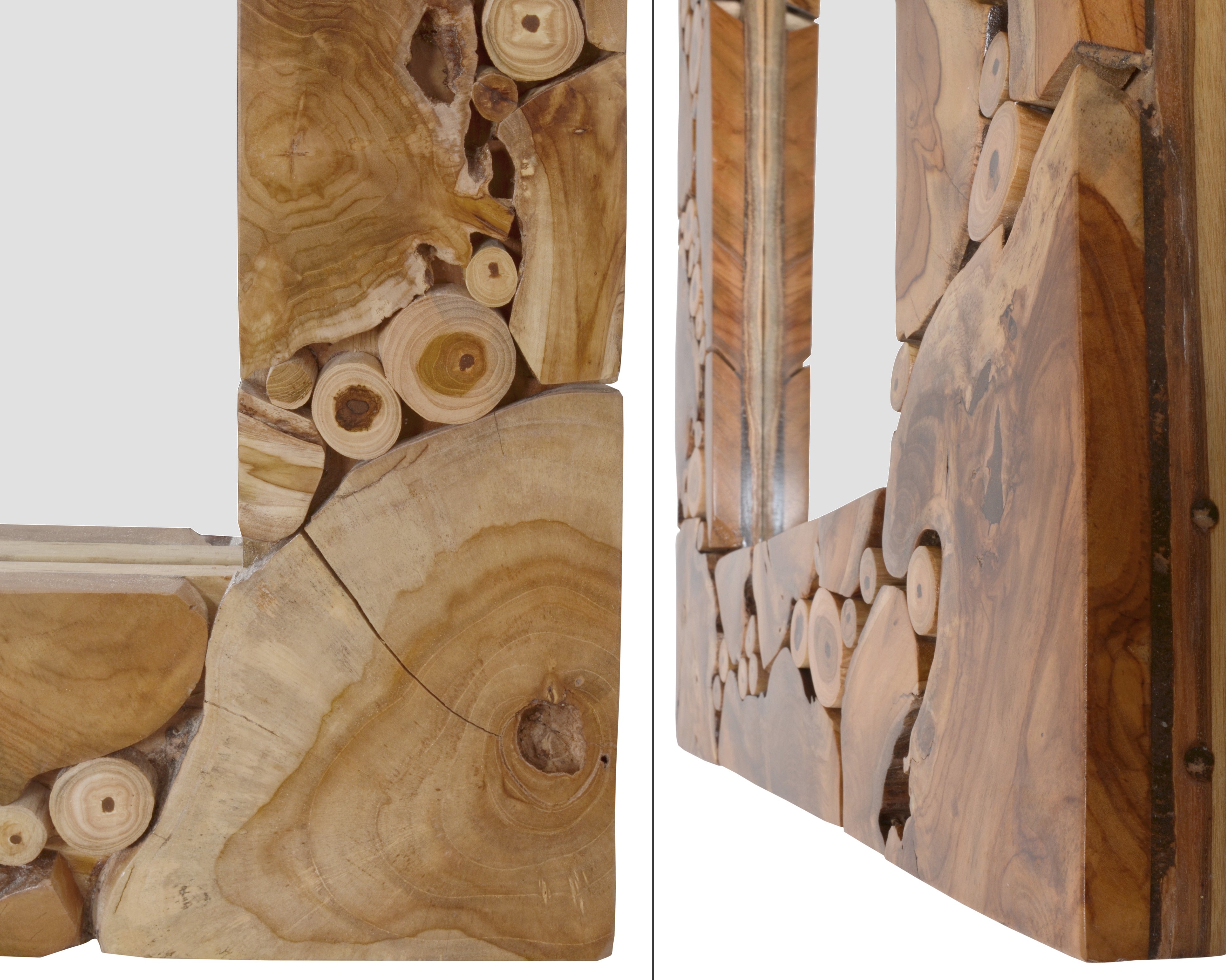 The River Run Mirror is an artistic creation by local villagers using what's organic from their beautiful surroundings. The mirror is crafted in all Natural Teak Wood. The design offers a romantic artistic perspective of movement and nature. Hand finished in a natural stain which protects and enhances the wood. Overall Measurements are 27.00 x 1.75 x 39.50 Inches. Hangs either Vertically or Horizontally. Consider combining this mirror with other items from Mountain Studio Design. No Assembly Required.