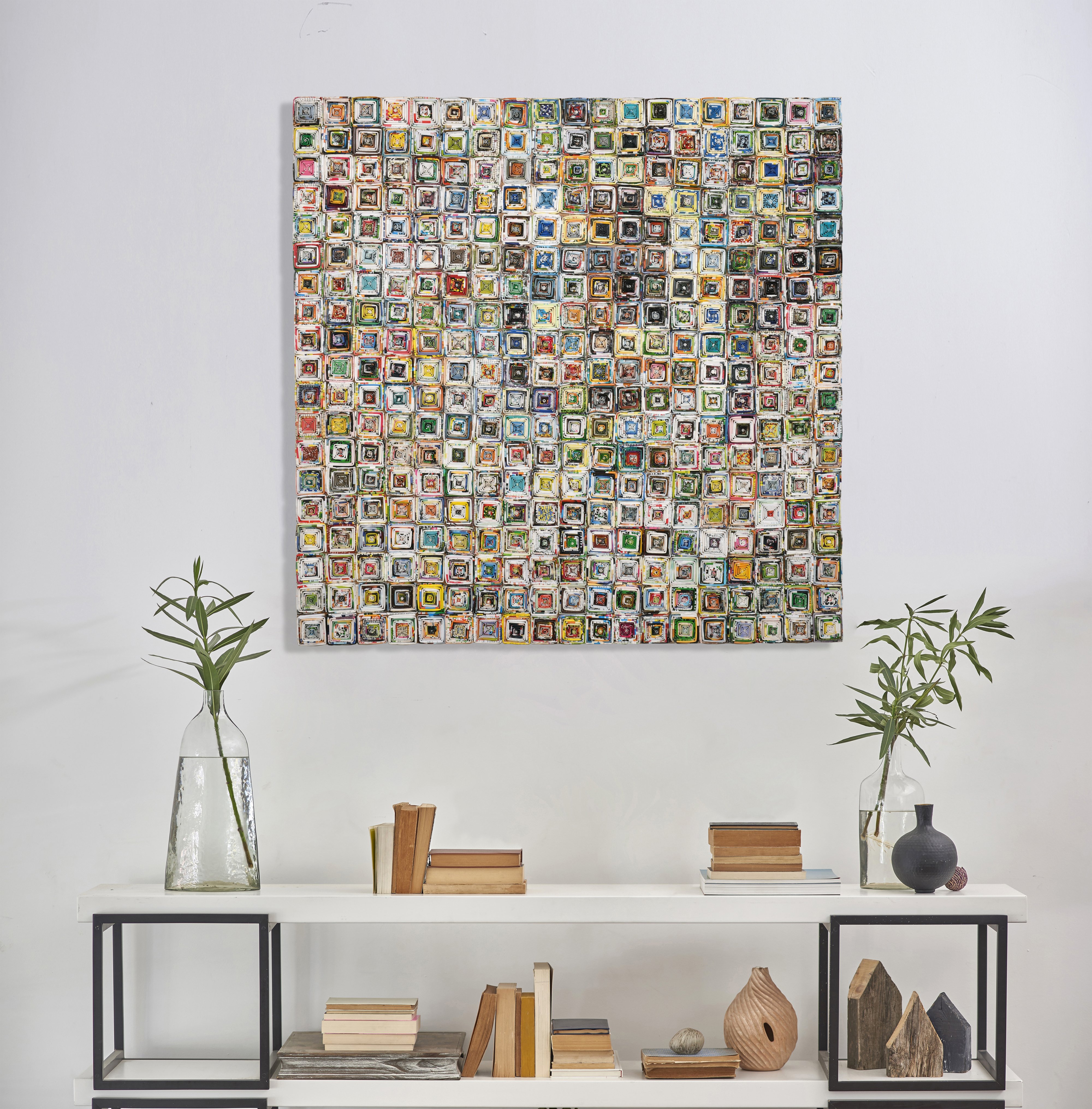 quilled MASTABA WALL ART 40 X 40 was developed as a work of very unique and interesting Modern and Colorful Wall Art. The Art of quilling, an ancient art created hundreds of years ago during the Renaissance when nuns and monks would roll gold-gilded paper remnants creating beautiful works of art and religious objects in this meticulous and time consuming art form. Today, artists from a small village in a remote town west of Bali make their living executing this traditional art passed on from generation to generation and quill for AFD Home beautiful and collectable works of art for Today's appreciating Collectors and for a Modern Decor placement. The beautiful quilled Panels offered is just such an item, the item possesses true collective beauty, colorful, vibrant and unique and an authentic piece of Collector's Art. Enjoy!