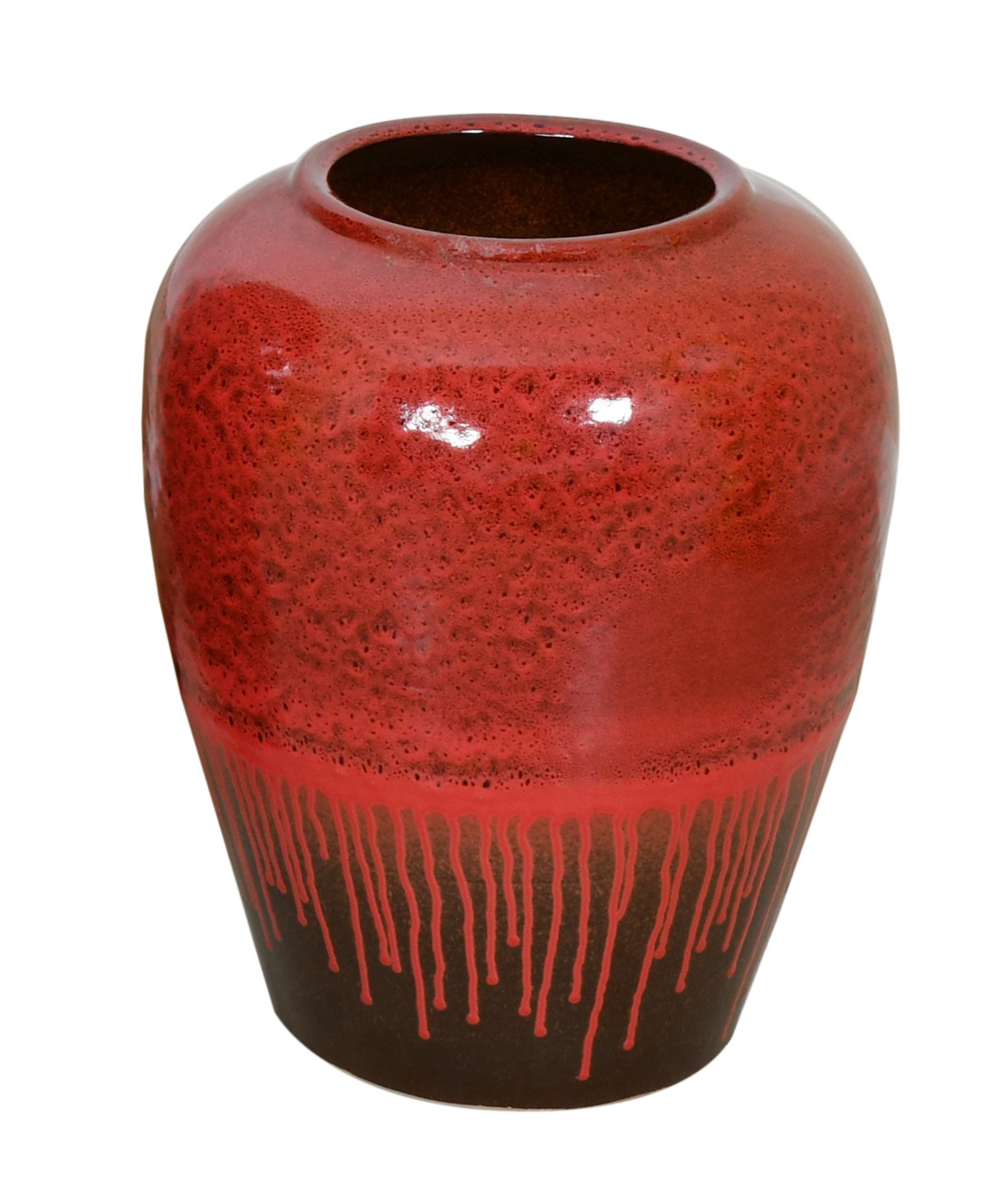 Our Adobe Red Small Vase is 19.5 Inch Tall. It is a Smaller Hand Cast Ceramic Vase fired in special large Kilns reaching heats in excess of 1000 degrees that dries the clay. The firing also makes the vases strong and waterproof. The varying finer finish glazing techniques used create the beautiful effects you see. This series features a very deep Adobe Red to Adobe Earthen Brown Glazing Tones emanating from the base. Sold separately it is often ordered with the matching other sized Adobe Vases to create interesting 3 pce sets with heights from 19.5 to 42 Inches Tall. Adobe Collection is offered exclusively by AFD Home. No Assembly Required