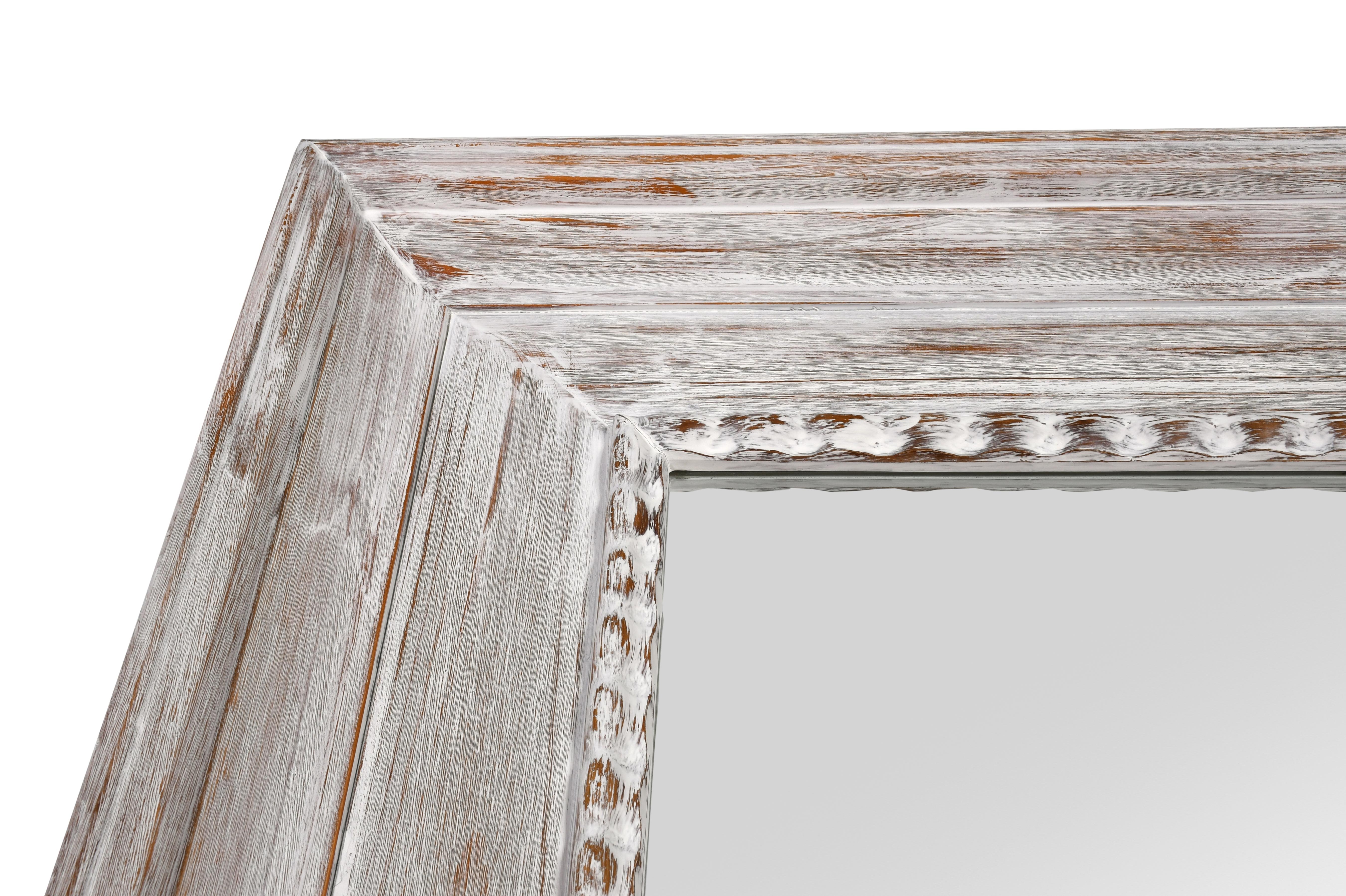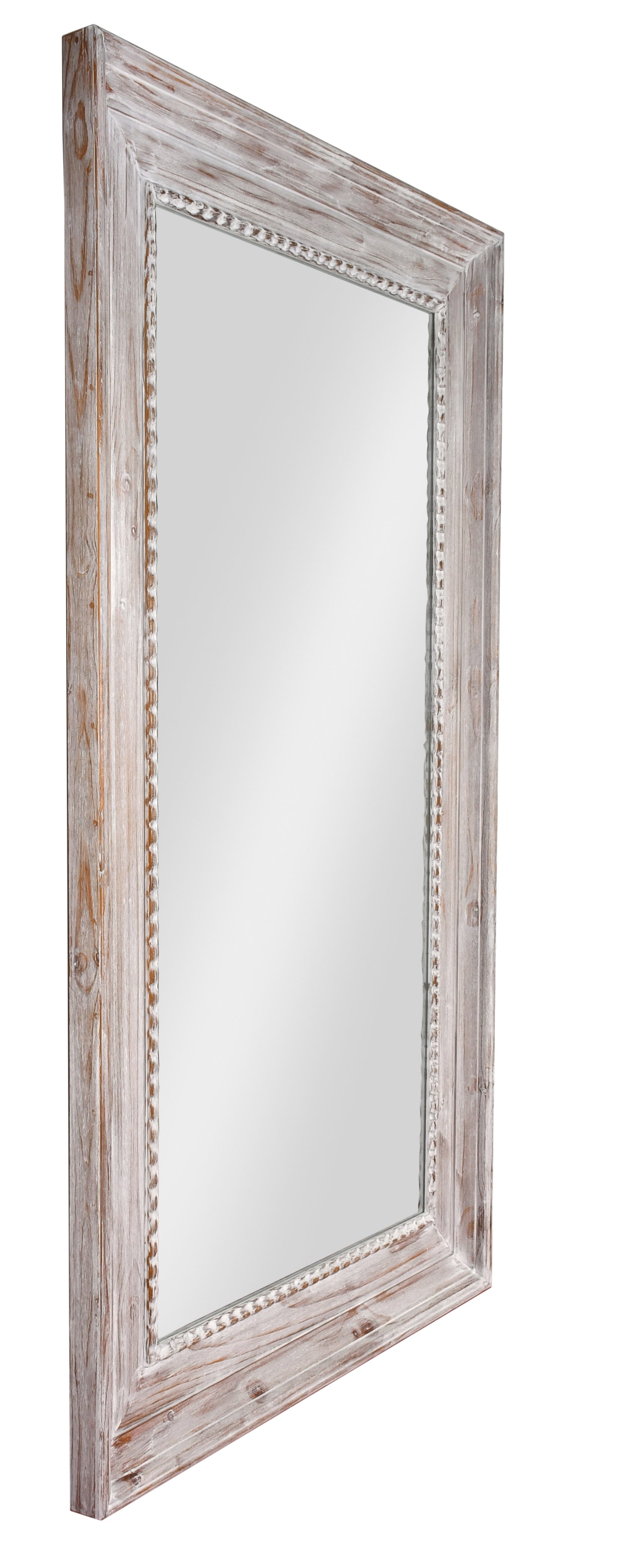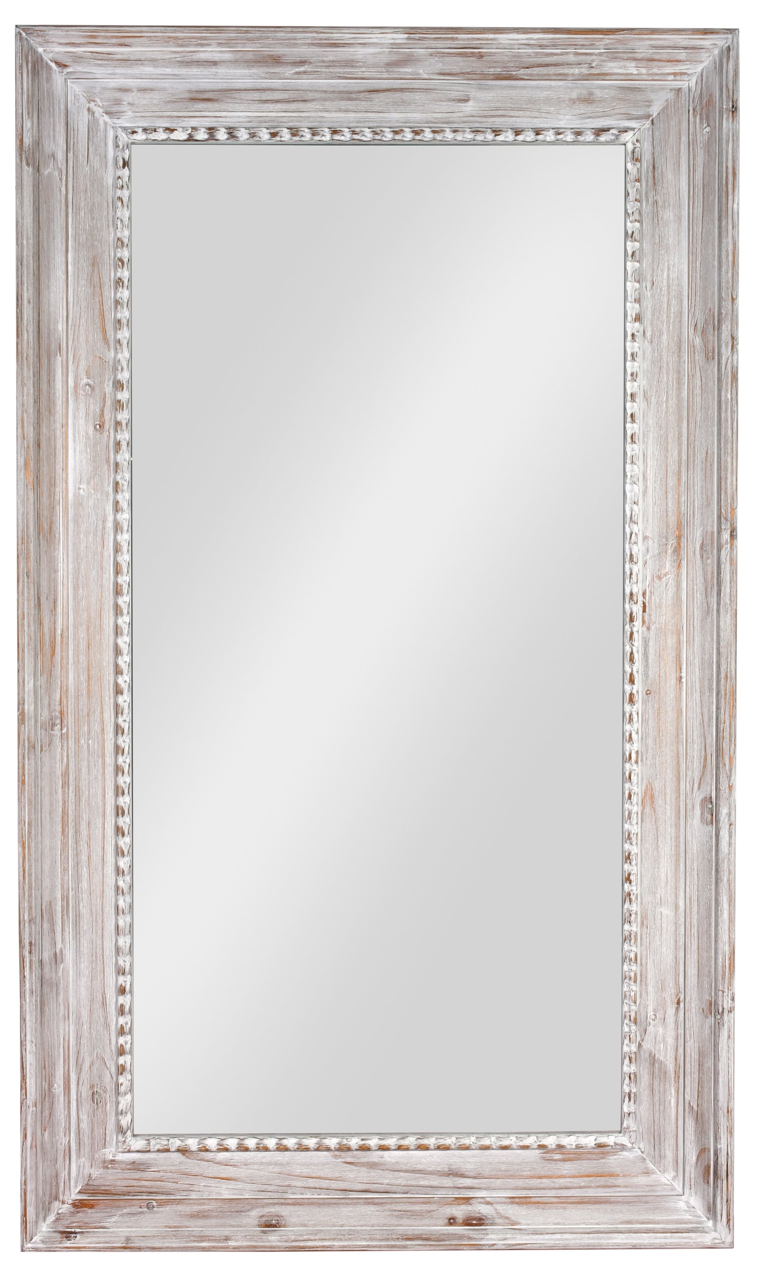 BUYER BEWARE ** The Mammoth Wood Mirror with Seasoned Wood Finish is one of the largest solid wood Mirrors available. This mirror creates a major statement of Clean yet Massive Grandeur. Perfect for Commercial Applications in need of Spectacular. It is made in solid wood and finished by hand with a beautiful Seasoned Wood finish. Seasoned Wood finishing is created by hand scratching open the natural pores of the wood, rubbing light grey wash into the open grain and then locking it in with a flat top coat for lasting preservation. This trending finish is a good selection on this large profile which is also offered in Silver leaf or Gold Leaf. While this huge mirror is popular for simply floor leaning use, Hangers are installed for hanging, but caution should be taken in doing so and make sure to secure into solid framing. The Biggest and the Best from Timeless Creations " Makers of America's Finest Decorative Mirrors" a division of AFD Home