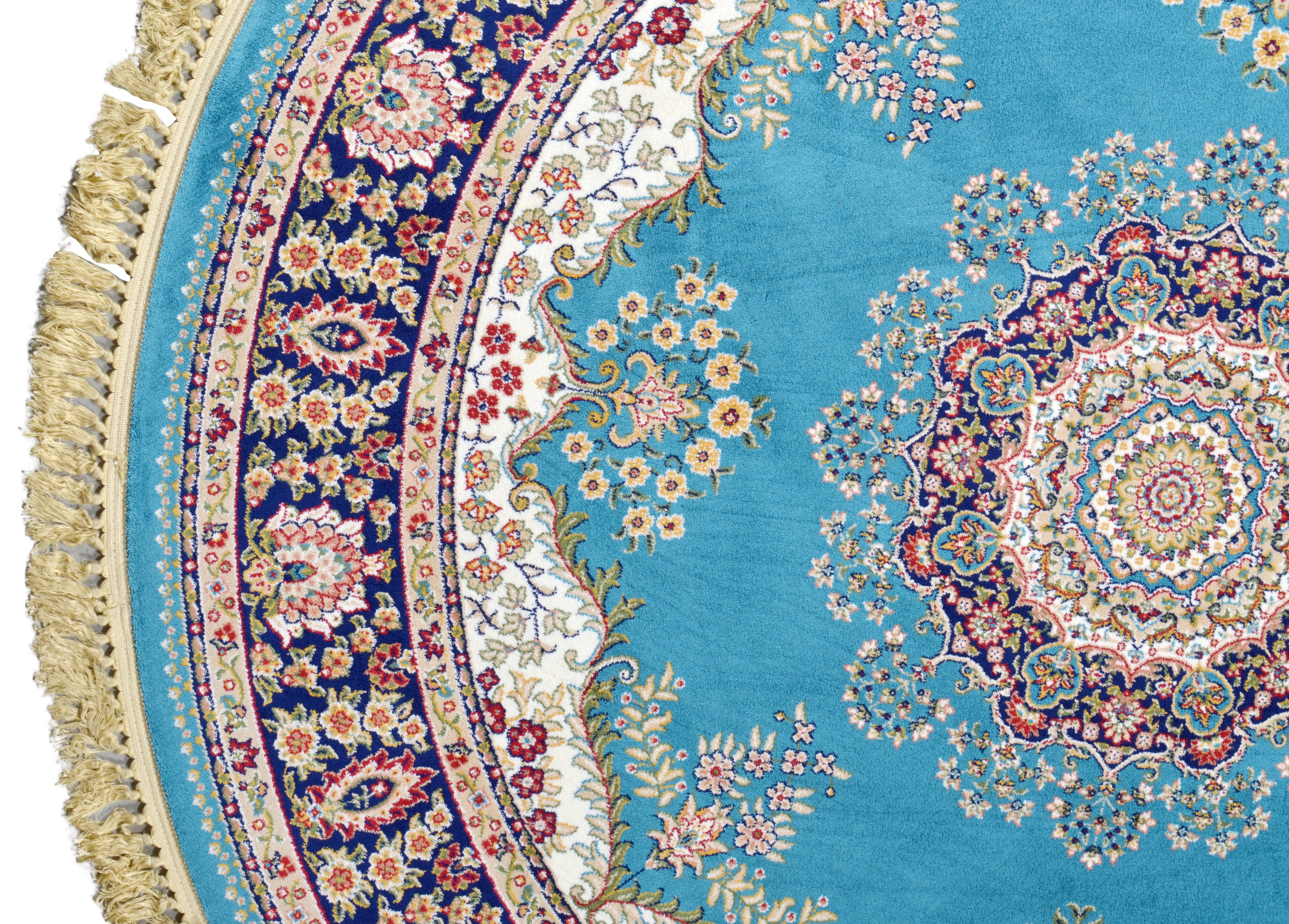 One of the newest additions is this beautiful 7 x 7 foot room sized rug from our spectacular, Kashan Design Blue Collection. So striking in beauty and first impression. This is spectacular color combination with Turquoise Teal Blue Fields surrounded by exciting accent colors offering contrast with dark Black Blue, Cream and touches of Burgundy. Designer's understand that floor is the foundation of any well designed room as we naturally look were we walk. This Kashan Design Blue Palace Rug will create a stunning first impression and will certainly help define spaces, accent furniture, or simply add some welcome color and texture to a room. The history of Kashan design's originate from Kashan an oasis town along the Kavir desert, in central Iran. It is one of the oldest cities in Iran, As early as the 17th century Kashan had a well established silk area rug industry. Coveting by kings, at one time it was commonplace to see Kashan rugs hanging on palace walls all over the world. It is for this reason that it is also referred to as the palace carpet. This modern interpretation is manufactured using a lustrous Viscose pile referred to also as synthetic silk. When combined with its 1 million point manufacturing detail made possible by production using a state of the art face-to-face power loom assures the highest consistent quality across all its designs. There are many popular sizes offered in this TIMELESS TREASURES RUG COLLECTION, consider matching this rug with one of its runners for a fresh take of style and color in Timeless Old World Luxury!