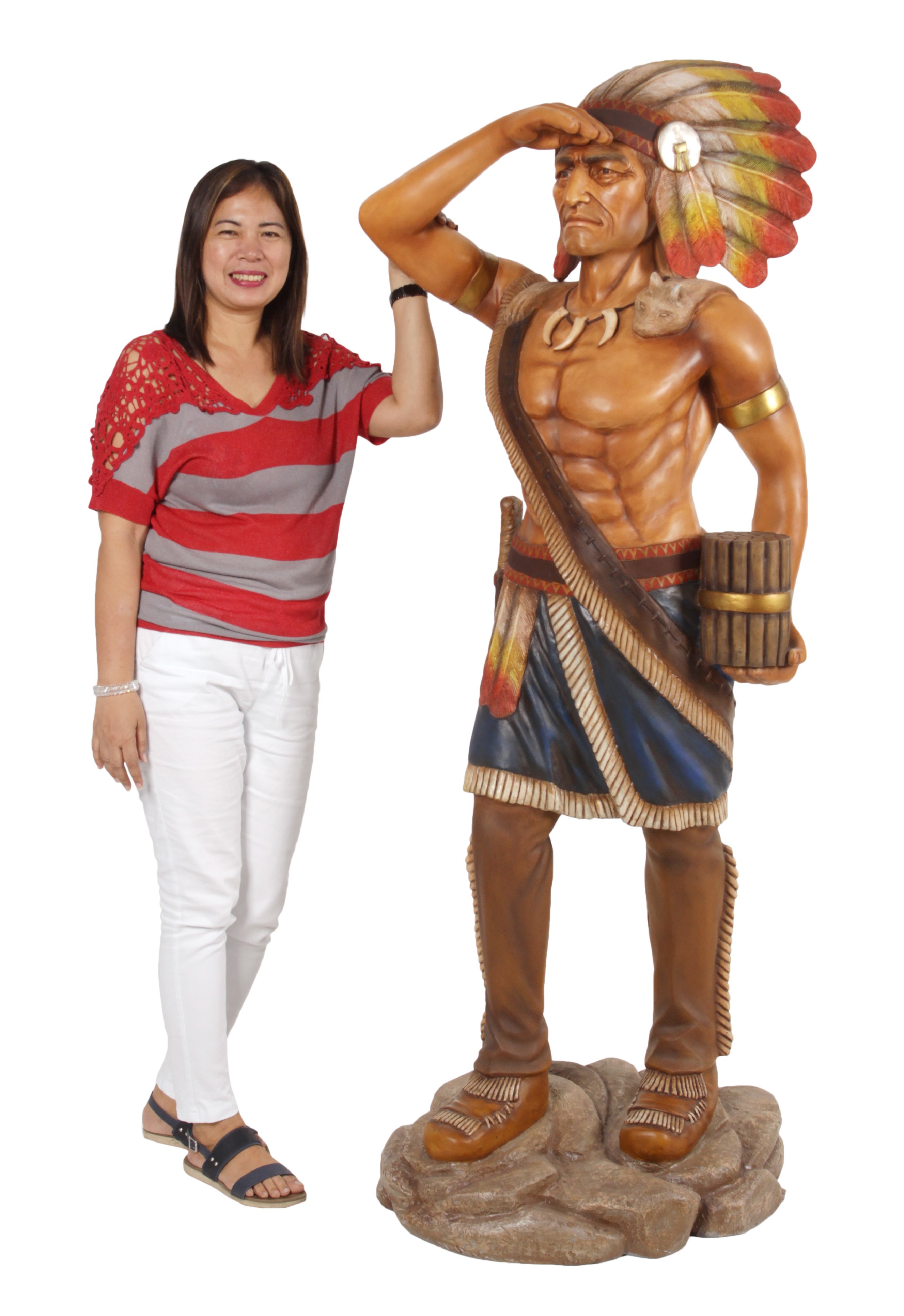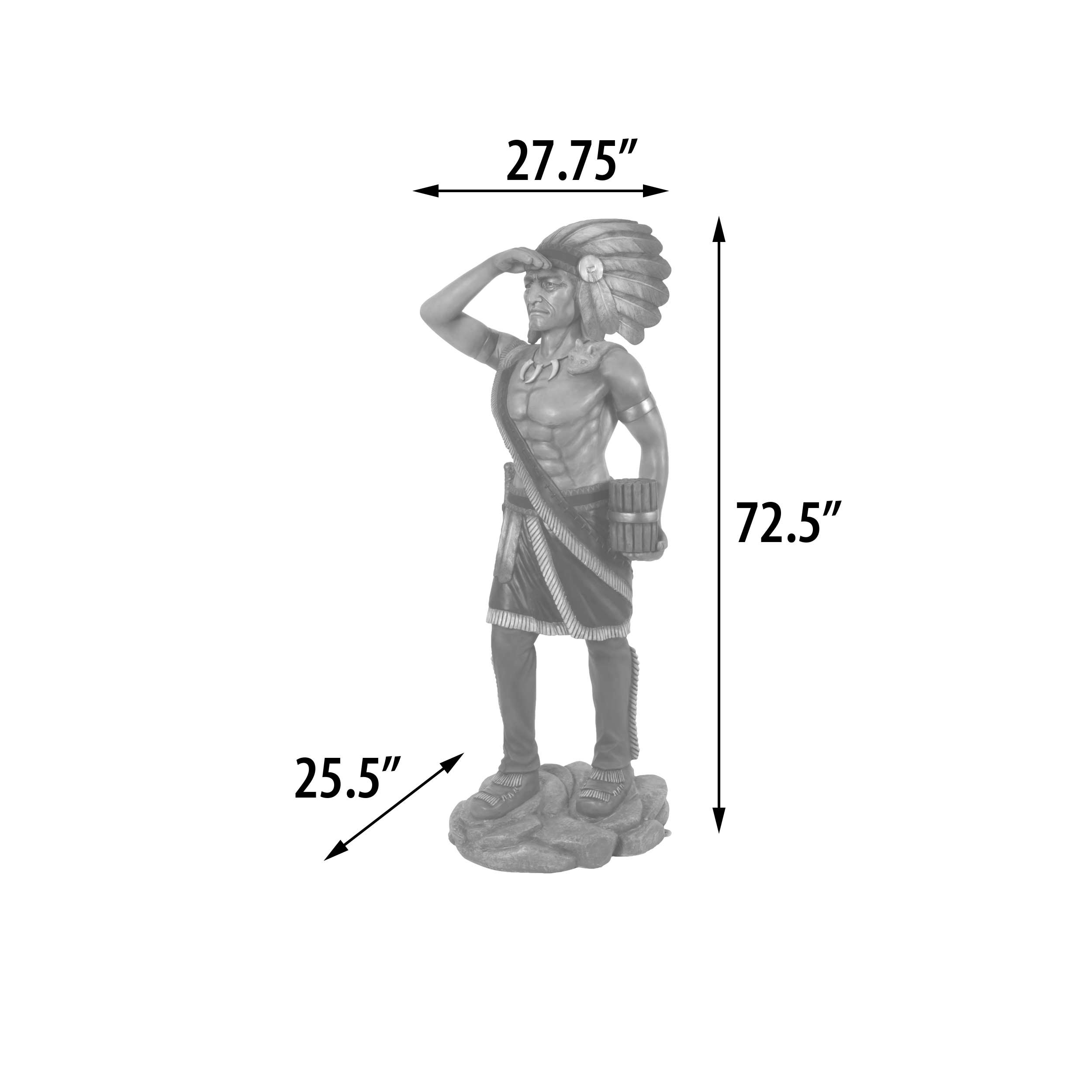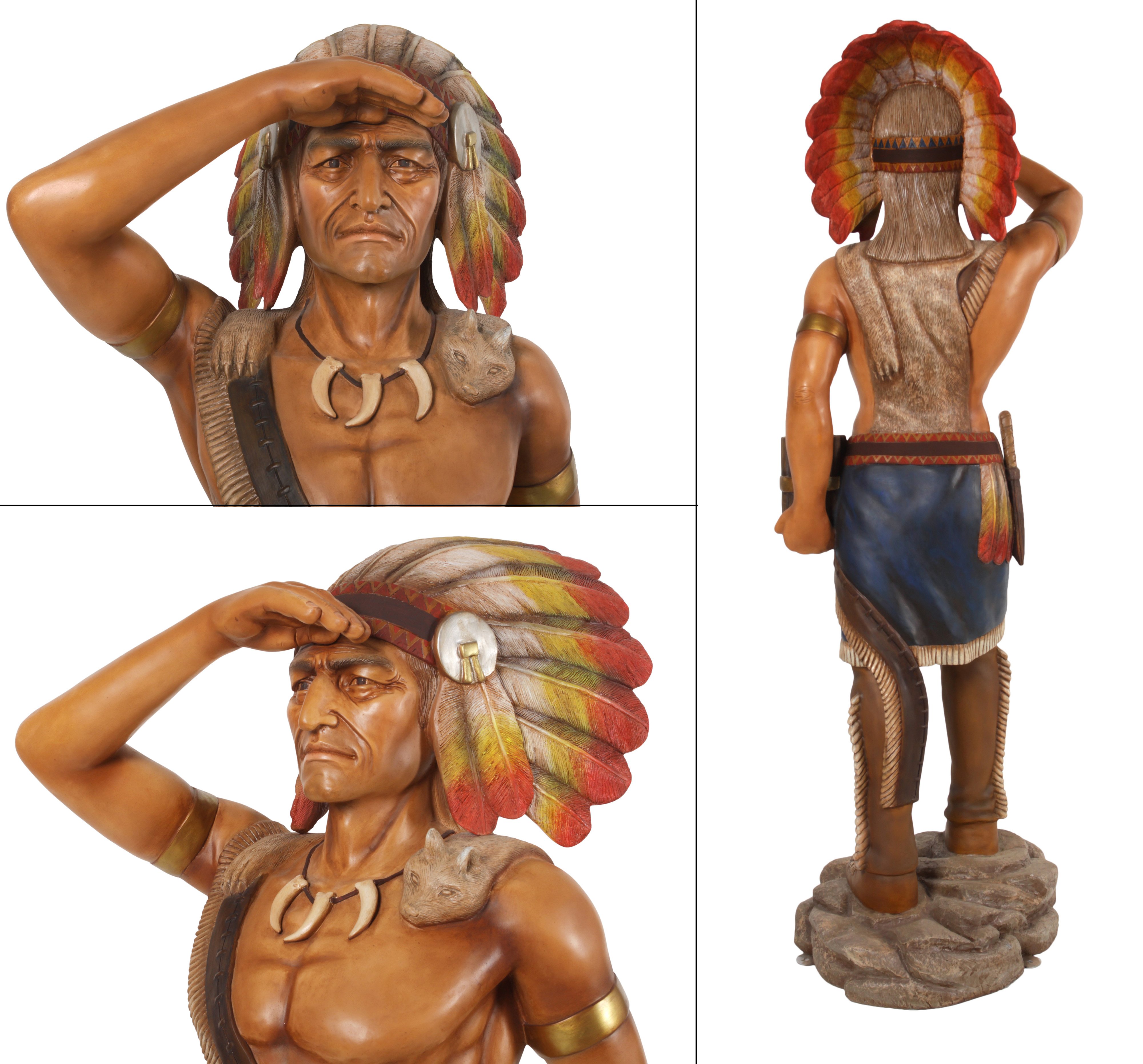 A popular Tobacco Store Indian 6 ft Tall, An authentic replica of classic Americana and folk art, our popular recreation is Hand cast suitable for indoor or outdoor use, Fiberglass and beautifully hand painted in realistic tones. An item with a place is many American Decors, whether commercial or residential. No assembly required. This authentic replica of classic Americana and folk art brings remembrance to the days of yesteryear when our life was simple, our streets were dirt roads, and the local purveyor of goods ran General Stores that had everything town would need including the Post office. Surely one would stumble across one of these priceless Tobacco Store Indian trade stimulators on display.