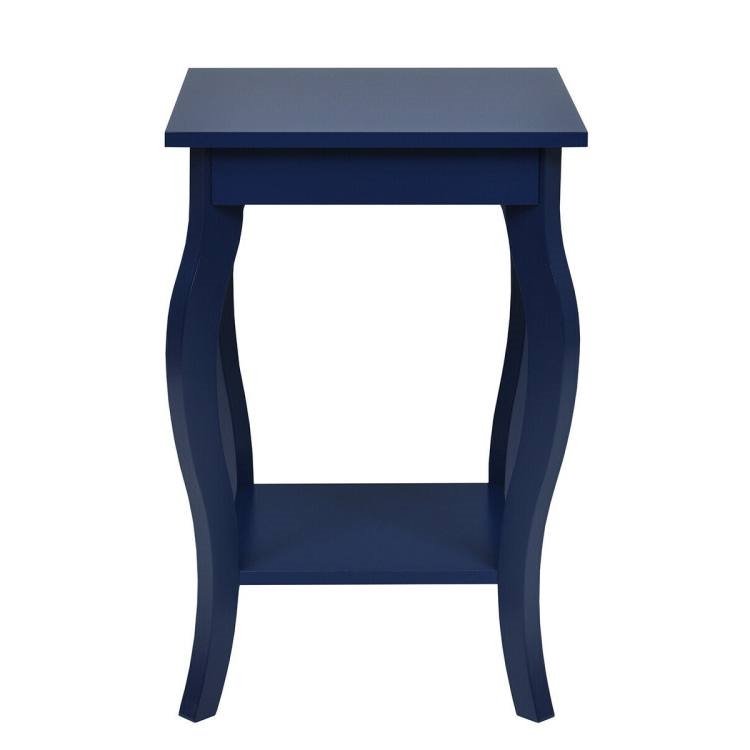 Stylish Nightstand End Table in Dark Blue Wood Finish - Set of 2