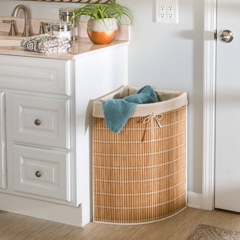 This Corner PE Wicker Rattan Laundry Hamper Dirty Clothes Basket with Liner with its own cotton canvas laundry bag will do the trick as it politely backs its way into any corner, while still having the capacity to hold several loads of laundry. And its subtle style lends itself to any room you might need it in. Now you can smile as you head out for an evening run without worry.