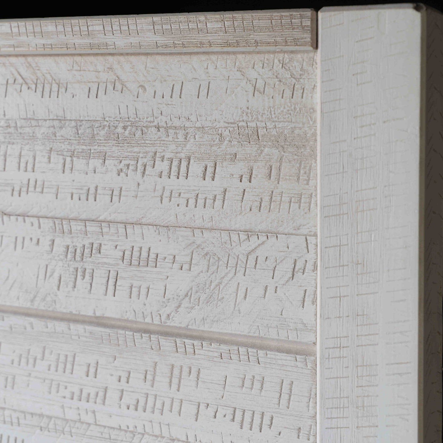 The FarmHome Off White Solid Pine Platform Bed in King Size blends contemporary and traditional farmhouse styles that make it feel familiar, yet bold. The finish is designed to accentuate the unique grain and natural texture in the wood panels. Made of 100% solid pine wood, this bed features a sturdy construction that can last for years.