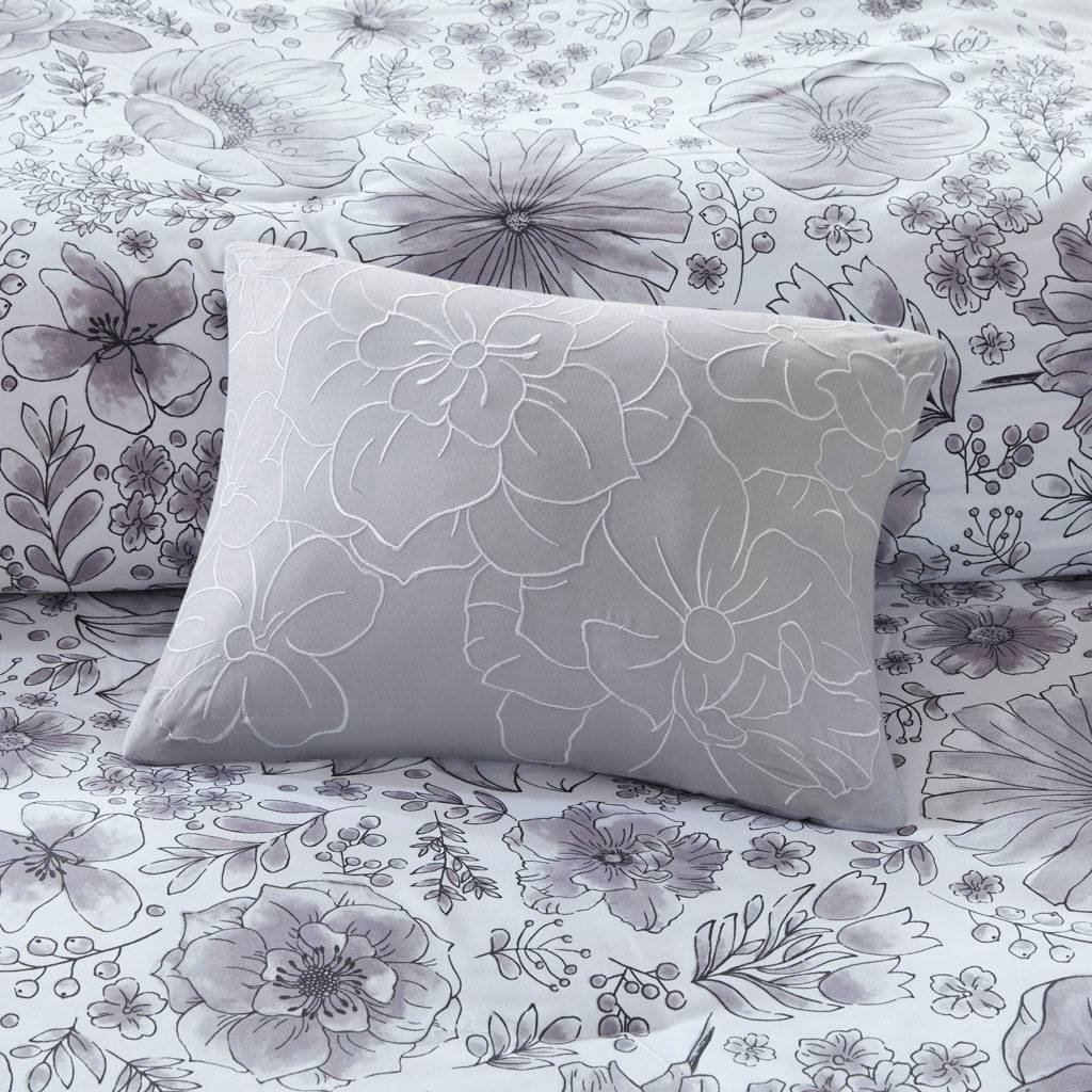 Home > Full size 8-piece White Grey Floral Pattern Microfiber Comforter Set