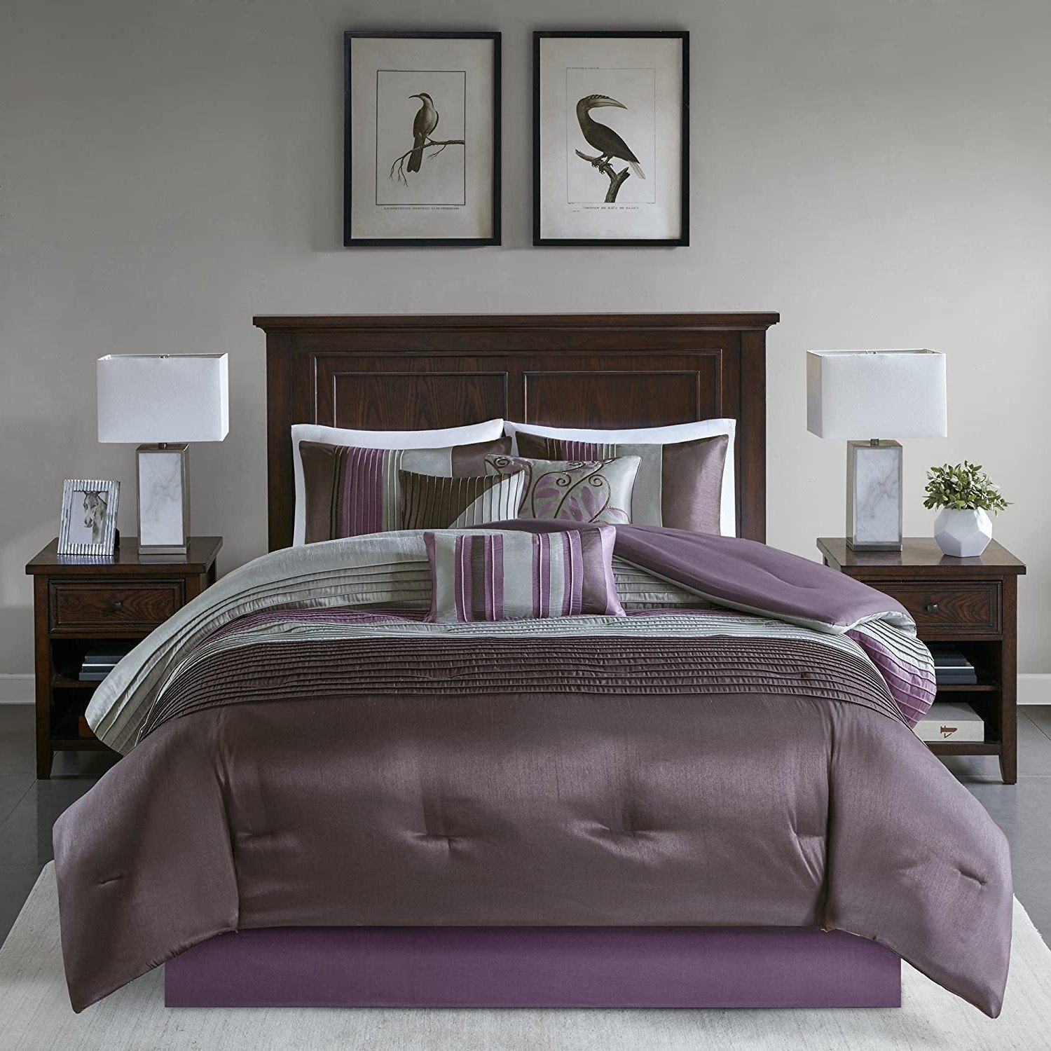 King Size 7 Piece Bed In A Bag Comforter Set Faux Silk Purple Gray Stripes King Size 7 Piece Bed In A Bag Comforter Set Faux Silk Purple Gray Stripes King Size 7 Piece Bed In A Bag Comforter Set Faux Silk Purple Gray Stripes King Size 7 Piece Bed In A Bag Comforter Set Faux Silk Purple Gray Stripes King Size 7 Piece Bed In A Bag Comforter Set Faux Silk Purple Gray Stripes