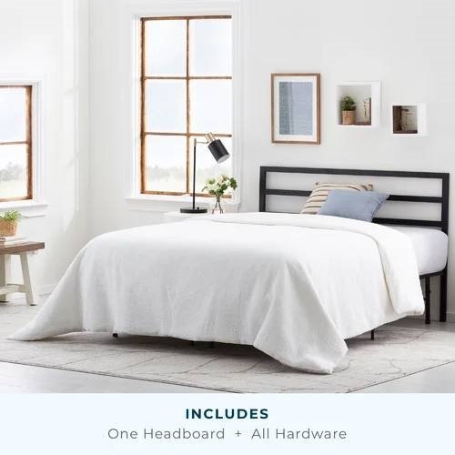 • All steel headboard with a matte black finish is a sturdy and stylish option to finish any bedroom in your home