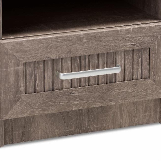 The Rustic FarmHome 1 Drawer Nightstand Natural Oak is the perfect mix of rustic and minimalist blends. This sturdy wooden nightstand boasts a natural oak finish with realistic woodgrain detail. The single drawer sports a vertical slat motif for eye-catching appeal. A single shelf offers additional storage space perfect for your favorite bedroom items.