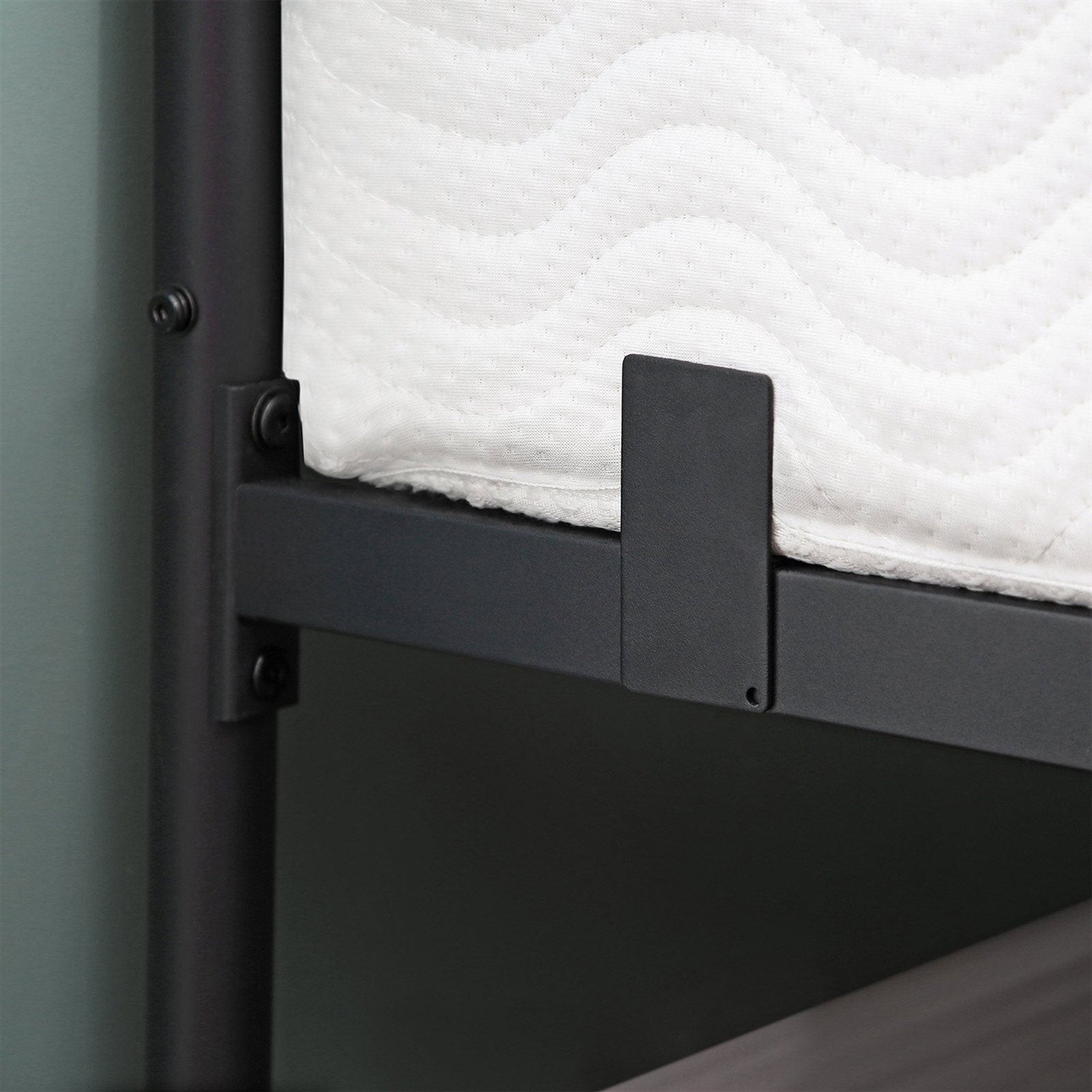 Modern vintage lover rejoice with the Vintage Queen Size Black Metal Platform Bed Frame with Headboard and Footboard. Curved headboard, matte black frame, and joint castings this queen size metal bed frame inspired by the Victorian era will be sure to infuse vintage and antique accents into your bedroom. : A metal frame, 13 metal support bars, and 4 H-shaped mattress brackets to keep your mattress from sagging without the need for a boxspring; 9 metal legs offer a sturdy foundation. Clear out the boxes stuffed in your bedroom corner and hide them out of sight under this queen size bed frame boasting 13 inches of space, keeping them organized and easy to grab the moment you need them.