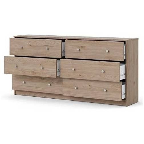 Organize your wardrobe with the Farmhouse Contemporary 6 Drawer Double Dresser in Oak. The simple, sophisticated design features six drawers with high sides, clean lines and a smooth finish. Equally suited for the kid’s room or master bedroom, the double dresser is a versatile piece of furniture, offering ample storage for all your organizational needs. The Farmhouse Contemporary 6 Drawer Double Dresser in Oak is traditional Danish design and produced with a fade resistant foil surface, which is easy to clean.