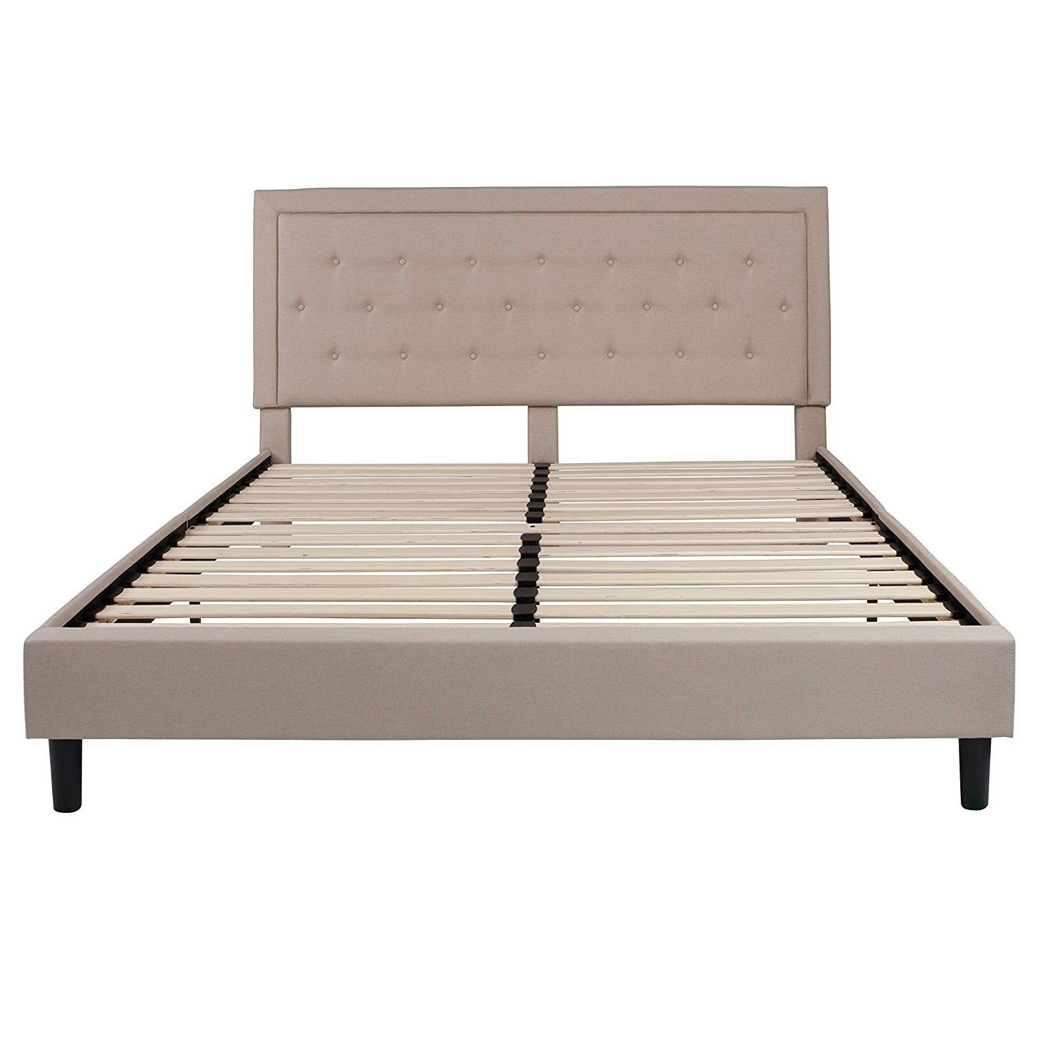 King Beige Upholstered Platform Bed Frame with Button Tufted Headboard King Beige Upholstered Platform Bed Frame with Button Tufted Headboard King Beige Upholstered Platform Bed Frame with Button Tufted Headboard