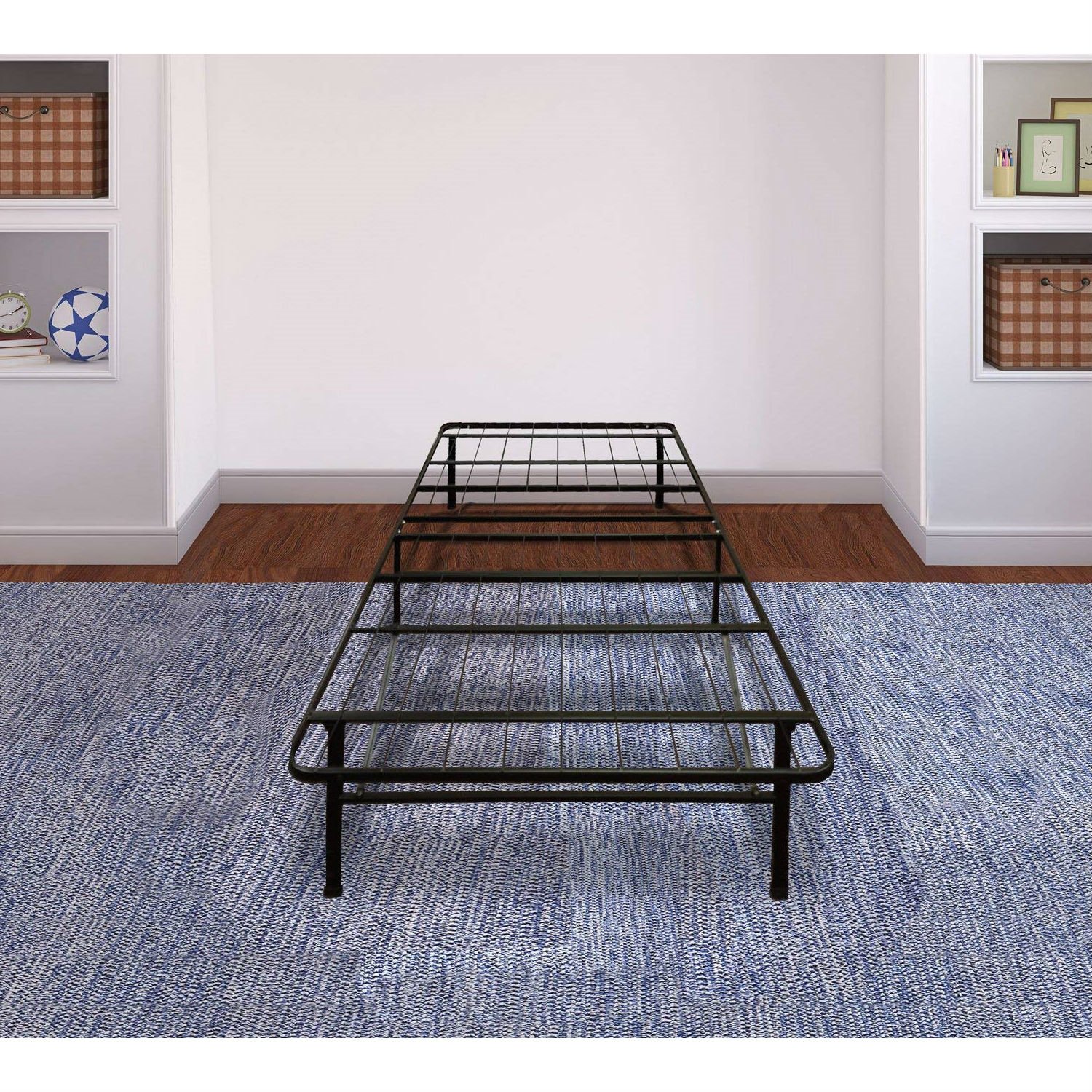 This Twin XL Heavy Duty Steel Metal Platform Bed Frame for your mattress replaces your current metal frame and box spring with a much more user friendly option. Excellent strength and durability, easy to bring home and set up, plus 14" of under bed storage! This affordable mattress support system is 100% steel construction and will conveniently and comfortably support your mattress while providing more than double the storage space found under traditional box springs and frames.
