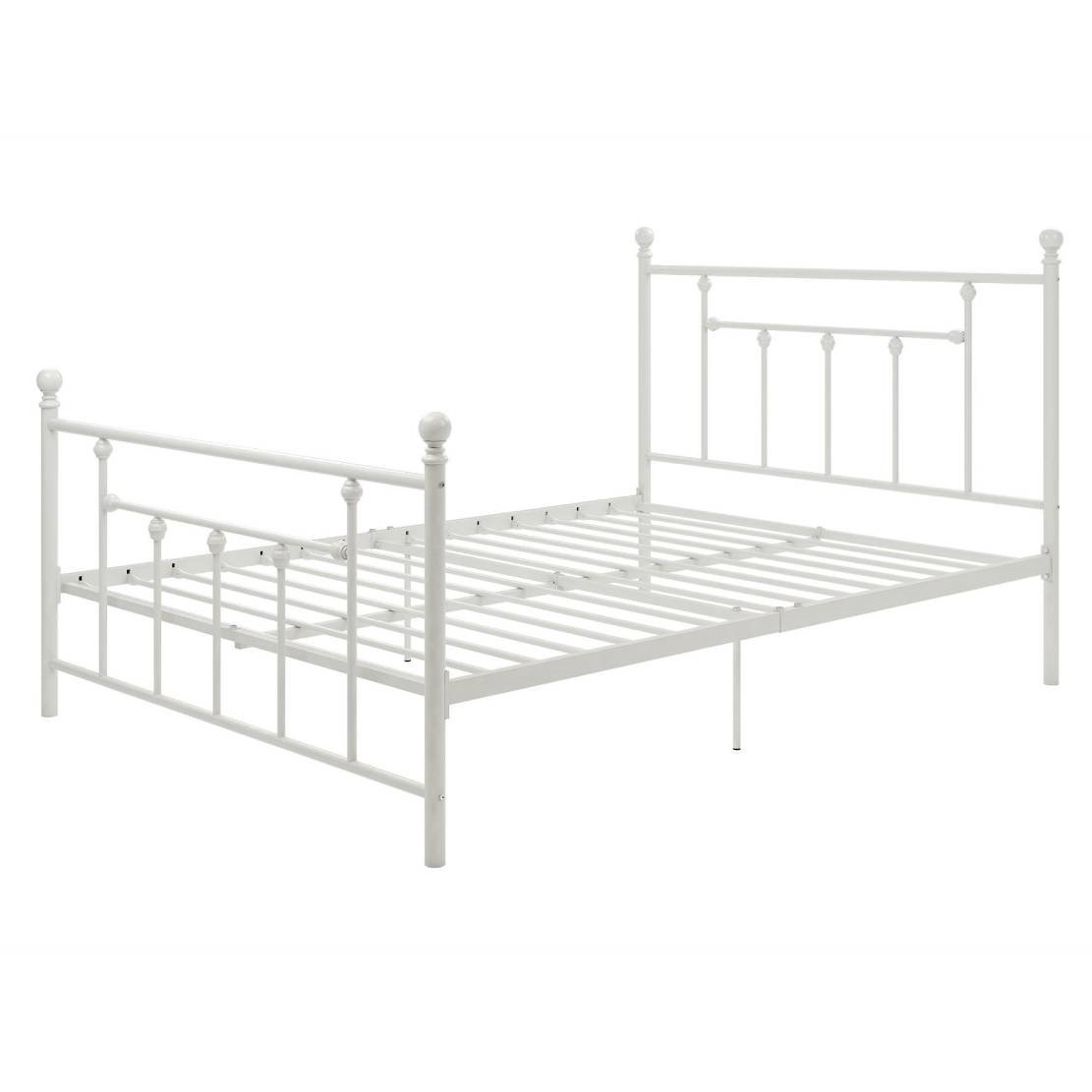 • Full size White Metal Platform Bed Frame with Headboard and Footboard