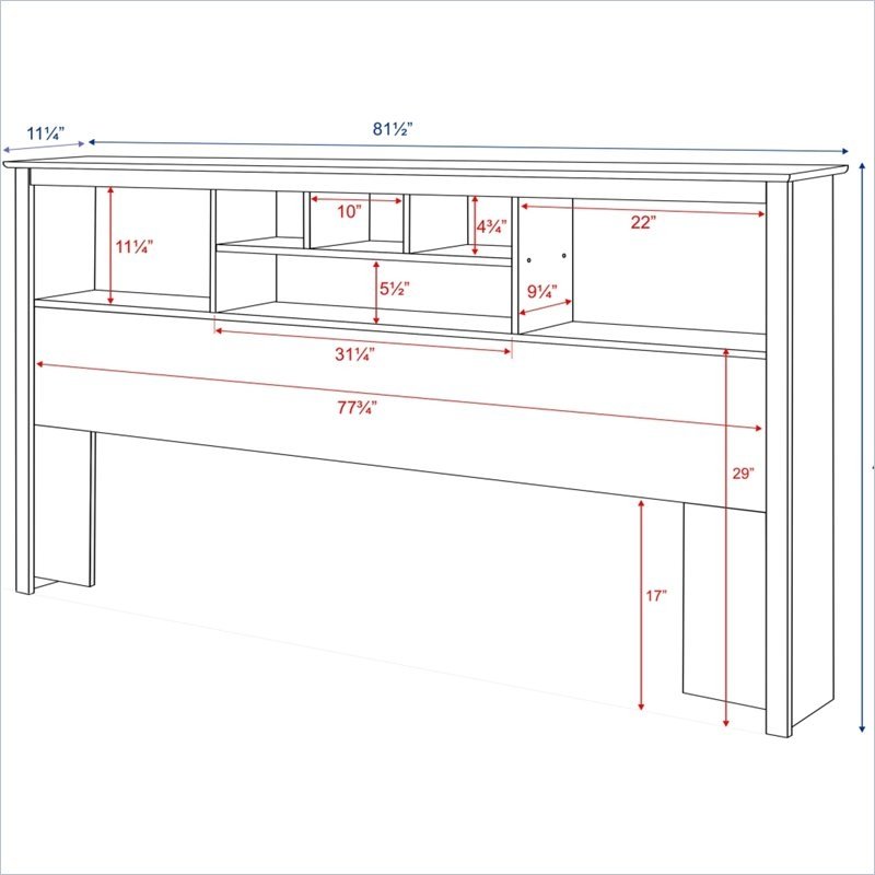 • Bookcase headboard is 11" deep