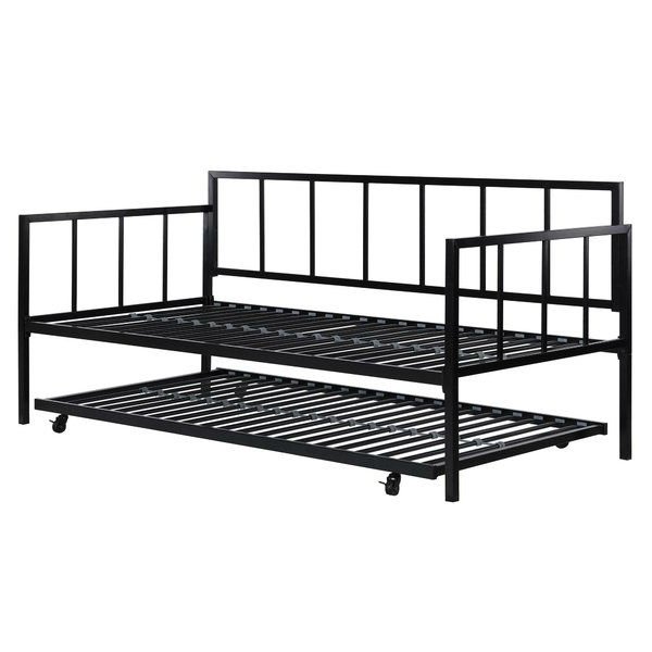 Twin size Heavy Duty Metal Daybed with Roll-Out Trundle Bed