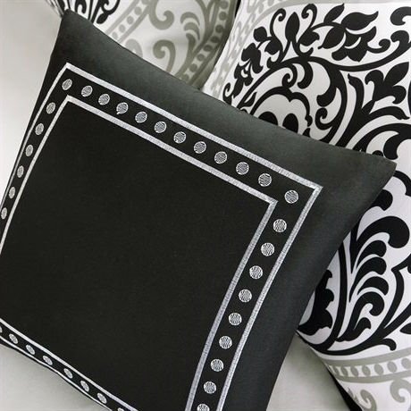 This King size 5-Piece Damask White Black Comforter Set is the perfect way to make a fashion statement in your bedroom. The large black and gray damask print creates a dramatic look with this comforter.